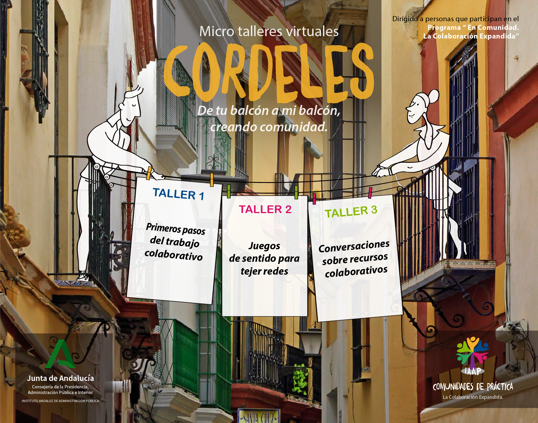 Desde el Programa "La Colaboración Expandida. Comunidades de Práctica", con motivo de la pandemia, quisimos seguir avanzando en la construcción de cercanía y comunidad, tan necesaria en estos tiempos, y realizamos una serie de Micro talleres virtuales dirigidos a personas que estaban enfocadas en el trabajo colaborativo. El nombre de estos talleres fue "Cordeles". De tu balcón a mi balcón, creando comunidad. Con estos talleres exploramos las posibilidades de la formación on line para superar la distancia física, tejer redes, compartir prácticas y construir colectivamente sentidos y proyectos propios.