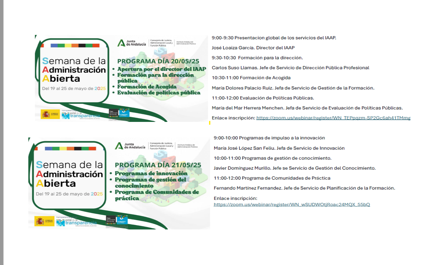 Día 21: https://zoom.us/webinar/register/WN_wSUDWOtjRoac24MQX_55bQ