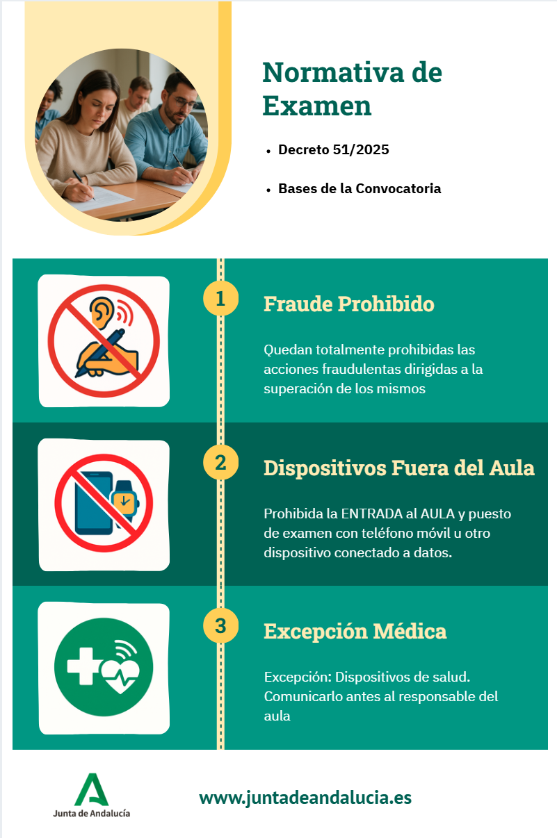 El Decreto 51/2025 introduce novedades importantes en la normativa de exámenes de las oposiciones de la Junta de Andalucía. Entre los aspectos más destacados recogidos en la infografía:
