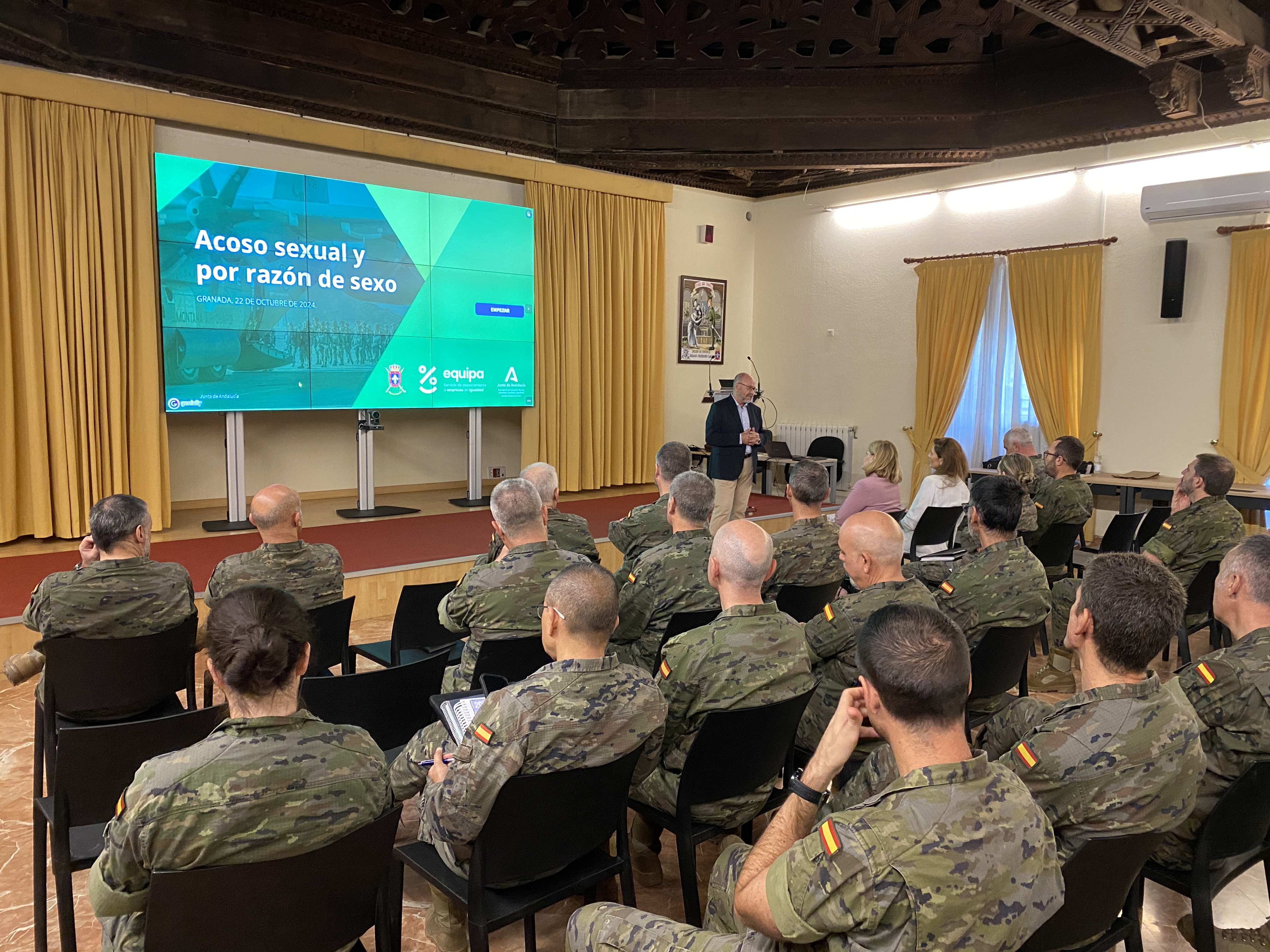 La Consejería de Inclusión Social, Juventud, Familias e Igualdad, a través del Instituto Andaluz de la Mujer (IAM), llevará a cabo el próximo 22 de octubre una formación presencial y especializada dirigida a los cuadros de mando del Ejército de Tierra en Granada para la prevención y actuación frente al acoso sexual y por razón de sexo en el ámbito laboral. El acoso hacia las mujeres son manifestaciones de violencia de género que se reproducen en los entornos laborales.