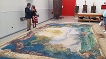 Del Pozo visita en el taller de tejidos del IAPH las sargas de la colección de Gustavo Bacarisas