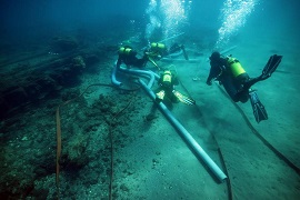 Técnicos del Centro de Arqueología Subacuática analizan los restos de un navío hundido frente a la playa de San Pedro de Marbella