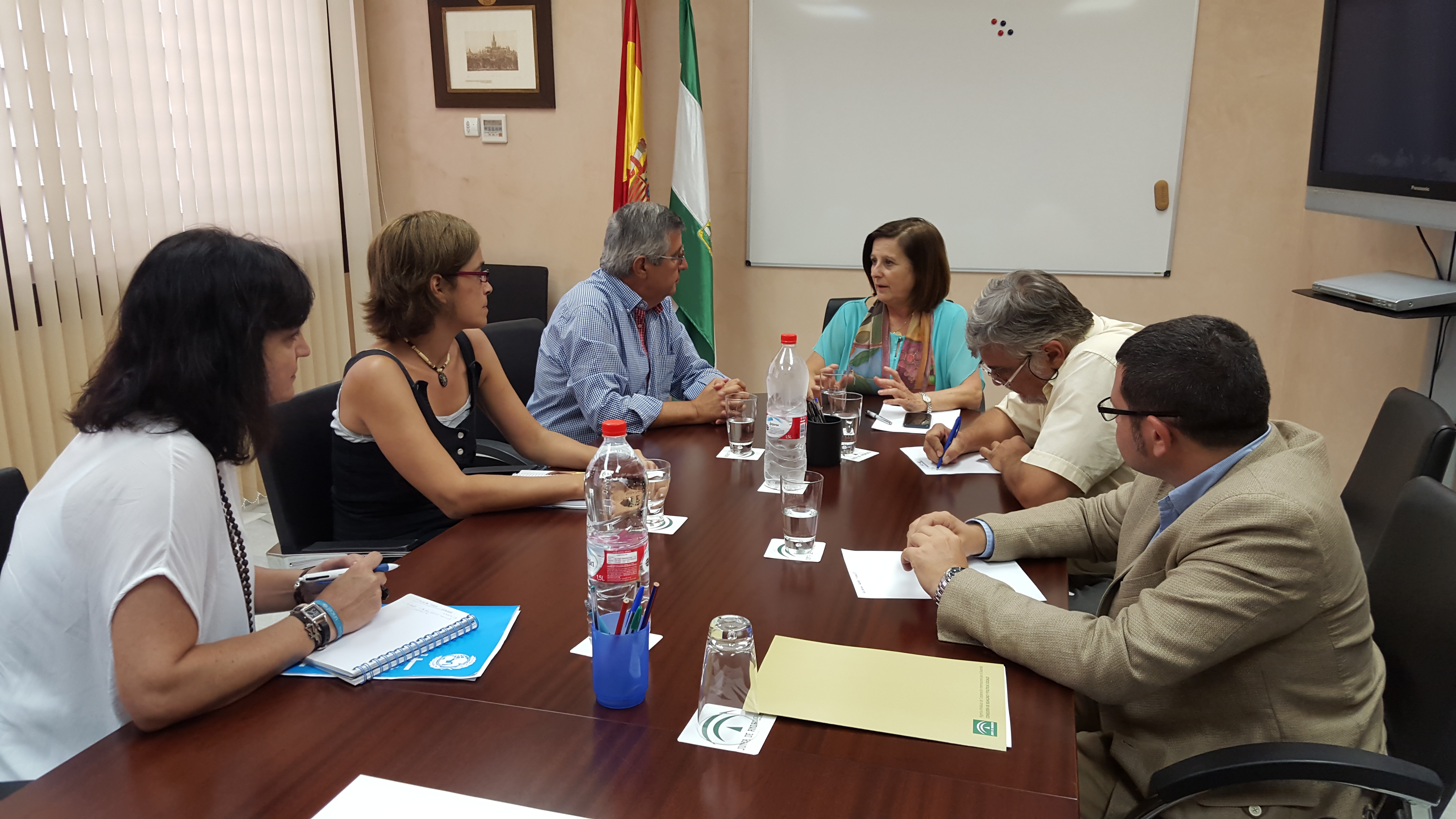 La consejera de Igualdad y Políticas Sociales, María José Sánchez Rubio, se ha reunido en Sevilla con representantes de ACNUR y UNICEF, organizaciones que trabajan en el sistema establecido por la ONU para la atención a refugiados y áreas que han padecido catástrofes naturales, sistema con el que la Junta de Andalucía ya viene colaborando en los últimos años. Sánchez Rubio ha agradecido a los representantes de estas organizaciones la “encomiable” labor que realizan cada día atendiendo a quienes más lo necesitan, y les ha trasladado el interés de la Junta por reforzar las líneas de colaboración que mantienen abiertas.
