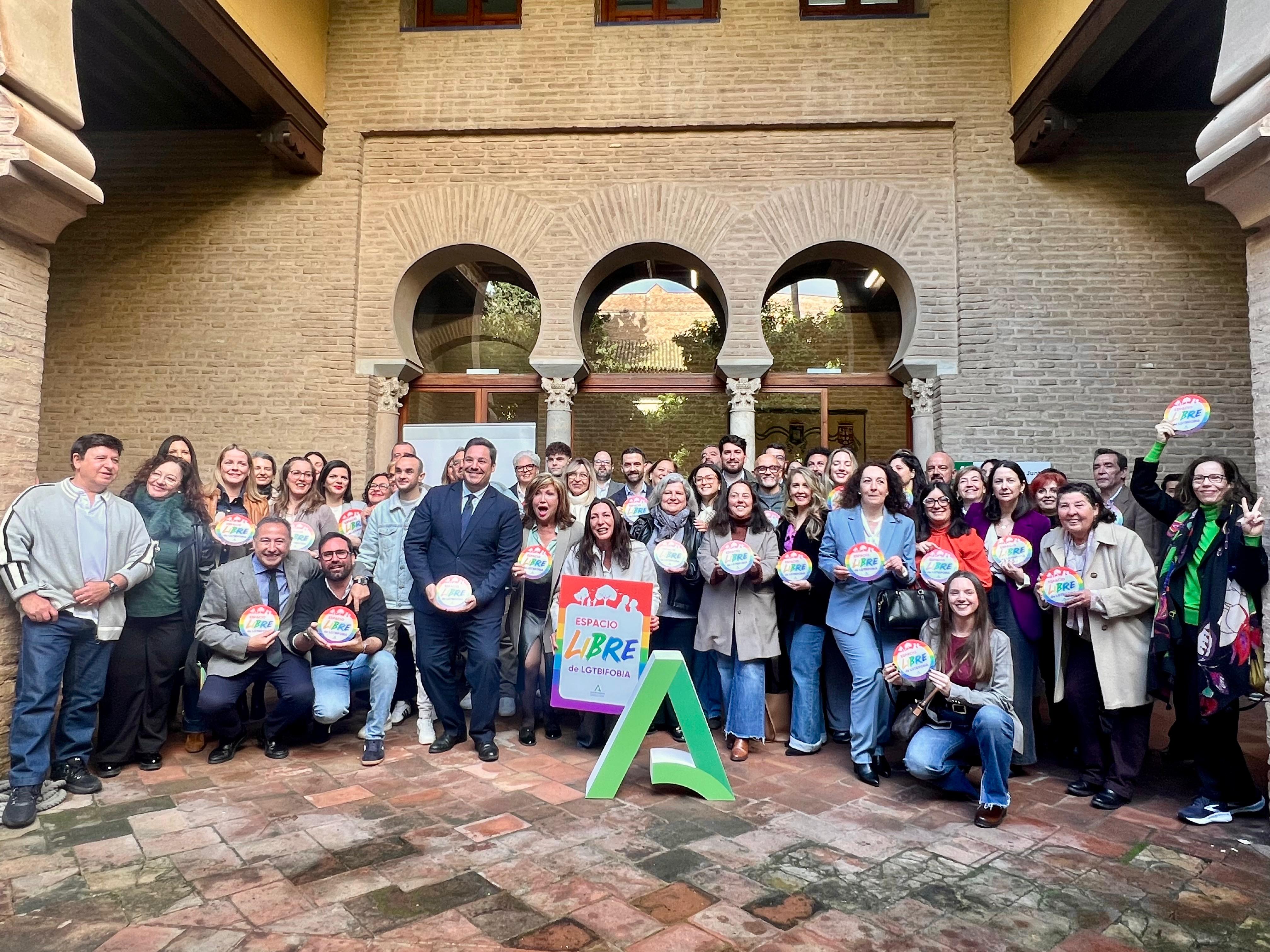 La consejera de Inclusión Social, Juventud, Familias e Igualdad ha entregado este martes a entidades e instituciones públicas y privadas de Cádiz, Córdoba, Huelva y Sevilla el distintivo ‘Espacio libre de LGTBIfobia’ en materia de diversidad, en virtud de la Orden publicada en el Boletín Oficial de la Junta de Andalucía (BOJA). Se trata de un reconocimiento que tiene como finalidad dar visibilidad a aquellos entornos andaluces que representan especialmente espacios de paz para las personas LGTBI, en los que viven con plena igualdad, respeto, seguridad y libres de todo signo de LGTBIfobia.