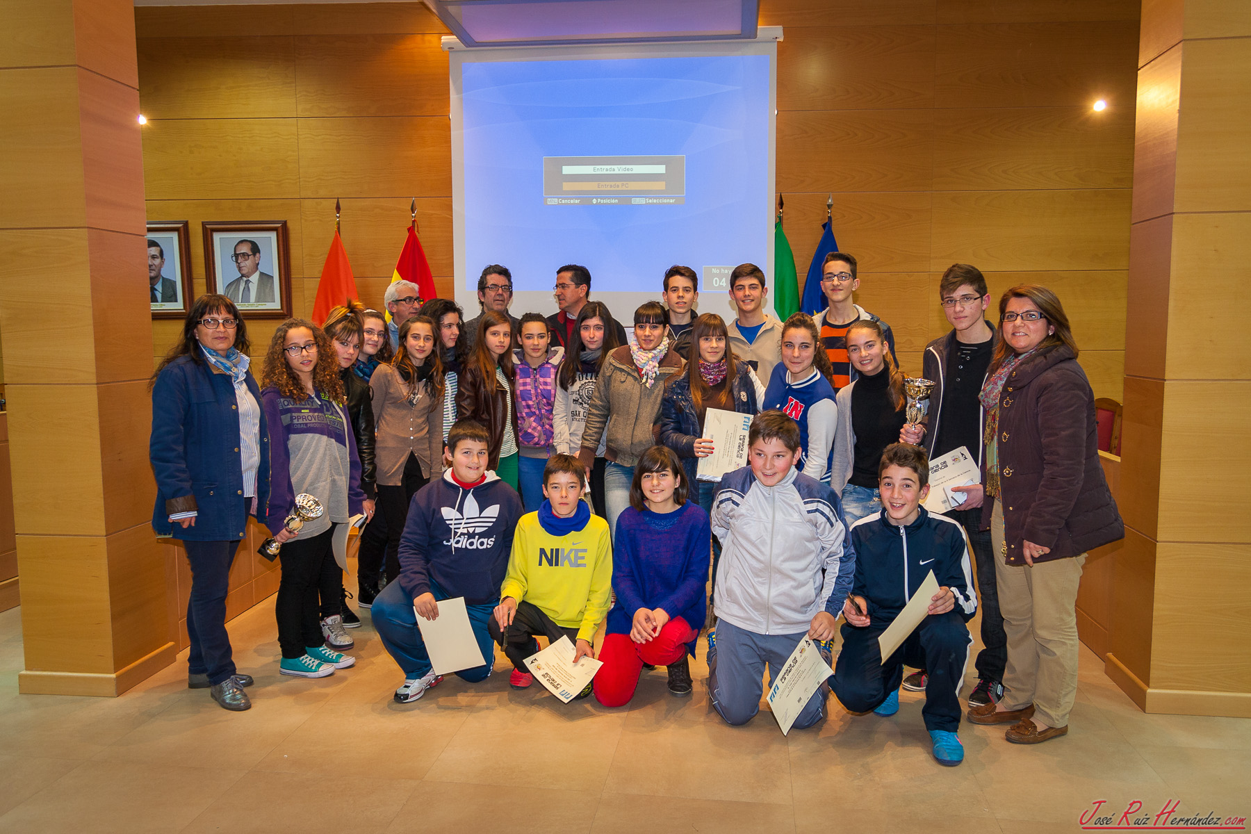 Ganadores y participantes en la II Semana de la Ciencia, junto a representantes de las entidades organizadoras y colaboradoras.