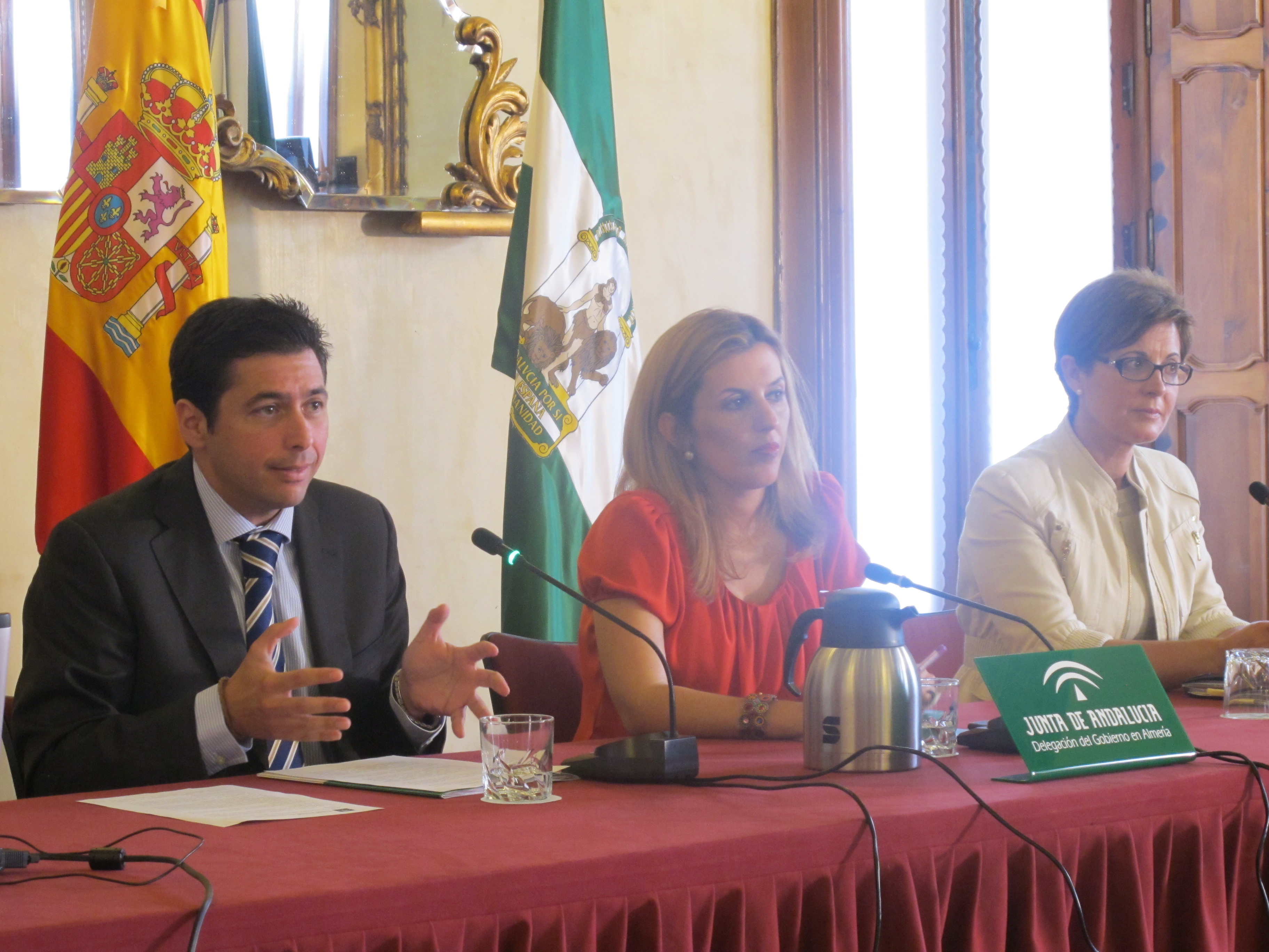 Director de la Agencia Andaluza de la Energía, Rafael Márquez; delegada del Gobierno, Sonia Ferrer; y delegada territorial de Economía, Innovación, Ciencia y Empleo, Adriana Valverde.