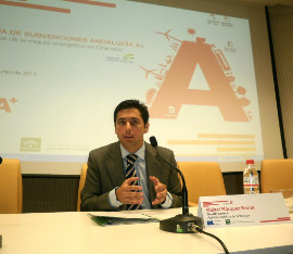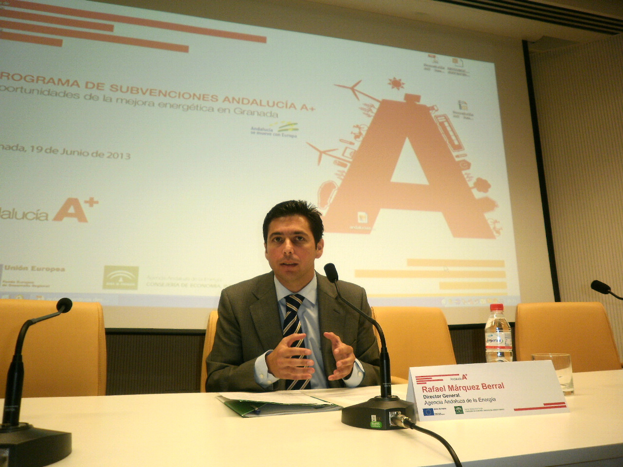 El director general de la Agencia Andaluza de la Energía, Rafael Márquez, ha presentado esta mañana ante profesionales, empresarios, agentes de la propiedad y otros colectivos las principales actuaciones energéticas en las que se centrarán en los próximos meses con objeto de ayudar a ciudadanos, empresas y administraciones locales a reducir sus facturas. Para ello, la Agencia de la Energía, de la Consejería de Economía, Innovación, Ciencia y Empleo, ha puesto a disposición de los mismos más de 149 millones de euros a través de dos líneas de ayudas: el Programa de Subvenciones para el Desarrollo Energético de Andalucía (Andalucía+) y el fondo reembolsable en materia energética.