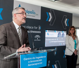 La consejera de la Presidencia e Igualdad, Susana Díaz, y el consejero de Economía, Innovación, Ciencia y Empleo, Antonio Ávila, han inaugurado hoy en Sevilla el nuevo Centro de Ingeniería e Innovación del Parque Tecnológico Aeroespacial de Andalucía (Aerópolis), el primer centro de ingeniería de España especializado en firmas de ingeniería aeronáutica.