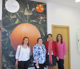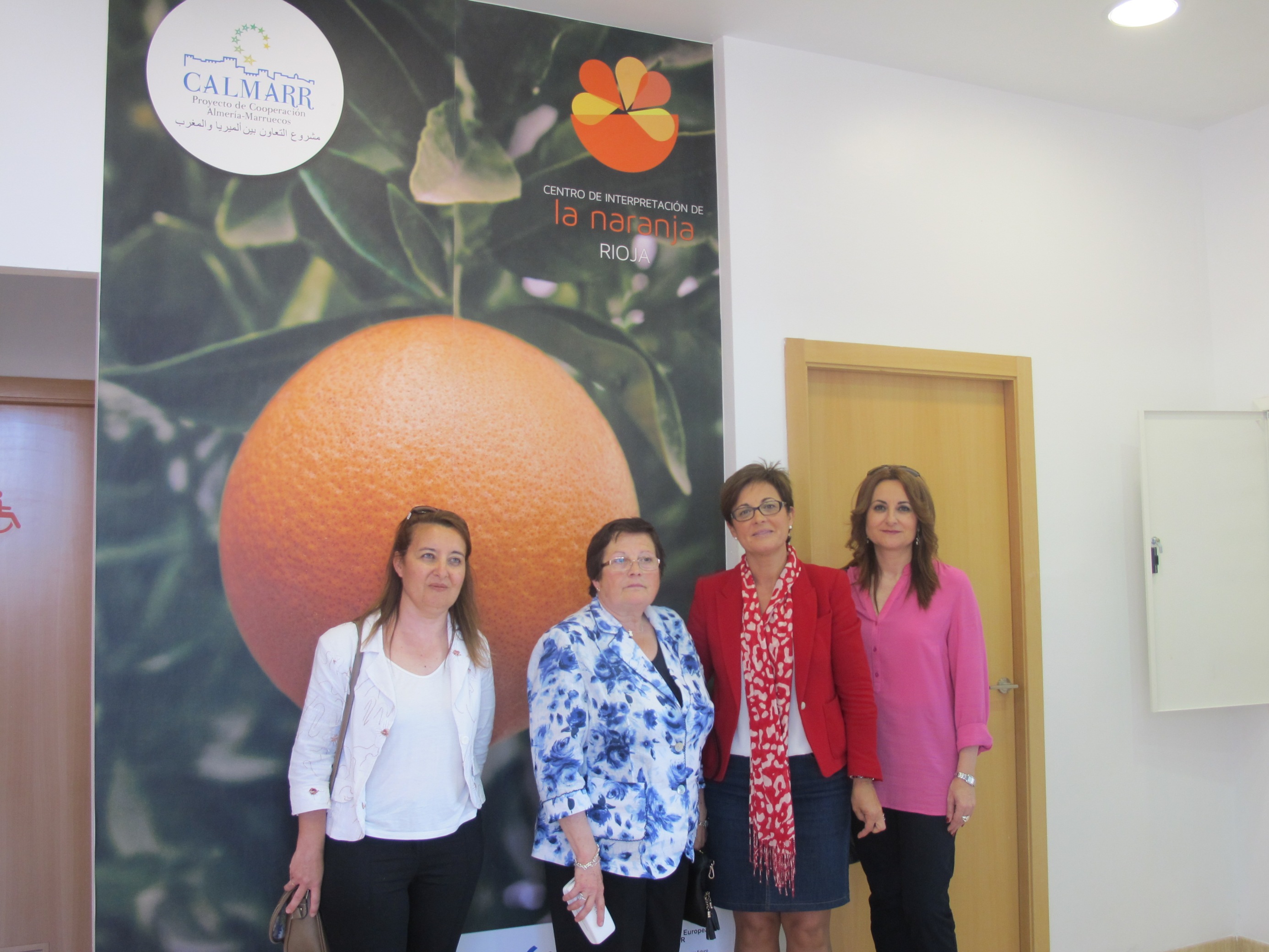 La delegada territorial de Economía, Innovación, Ciencia y Empleo, la alcaldesa de Rioja y concejales en el Centro de Interpretación de la Naranja.