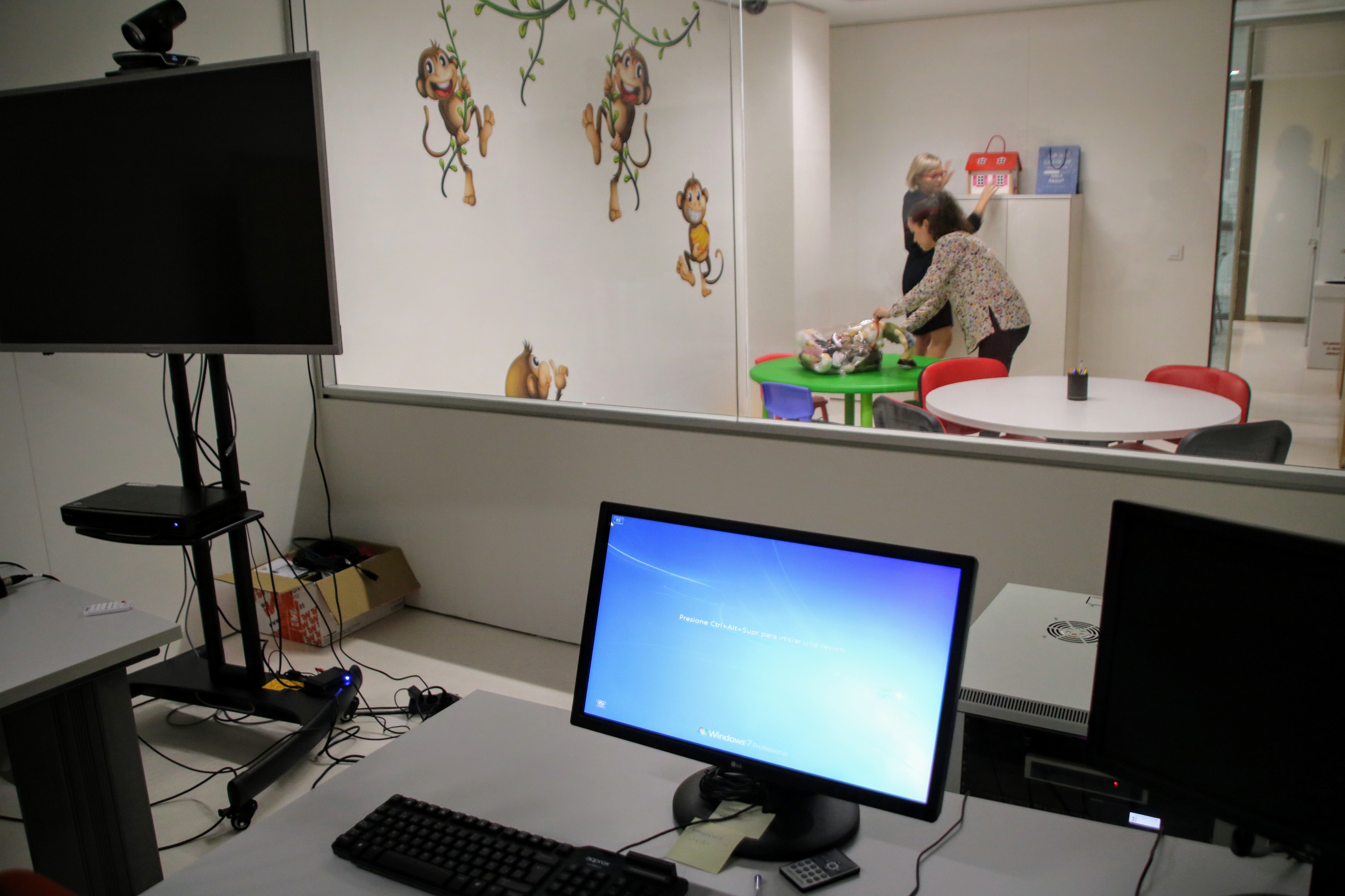 Este espacio está dotado de sistema de grabación audio/video, así como interconectada por audio con la zona de observación lo que permite la interactuación del juez/a con la persona que está realizando la diligencia. Existe también la posibilidad de realizar la observación remotamente a través de videoconferencia desde la sala de vistas.