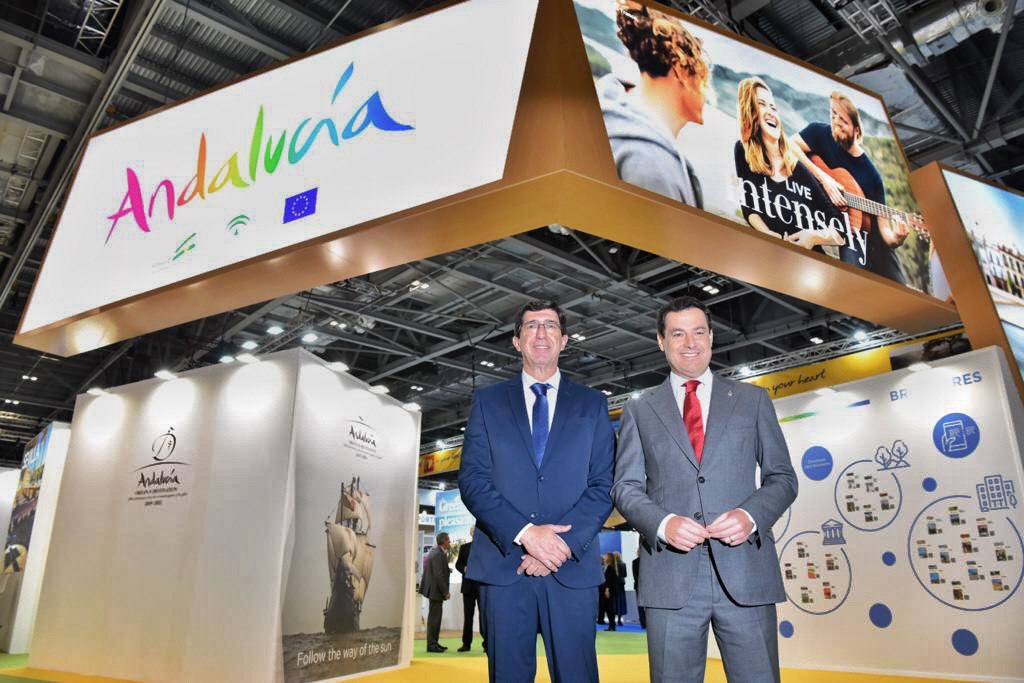 El presidente de la Junta de Andalucía, Juanma Moreno, y el vicepresidente y consejero de Turismo, Regeneración, Justicia y Administración local, Juan Marín, han visitado la World Travel Market en Londres donde han destacado la estabilidad y la confianza que existe en Andalucía, comunidad a la que han definido como una gran oportunidad para la economía y para el turismo.