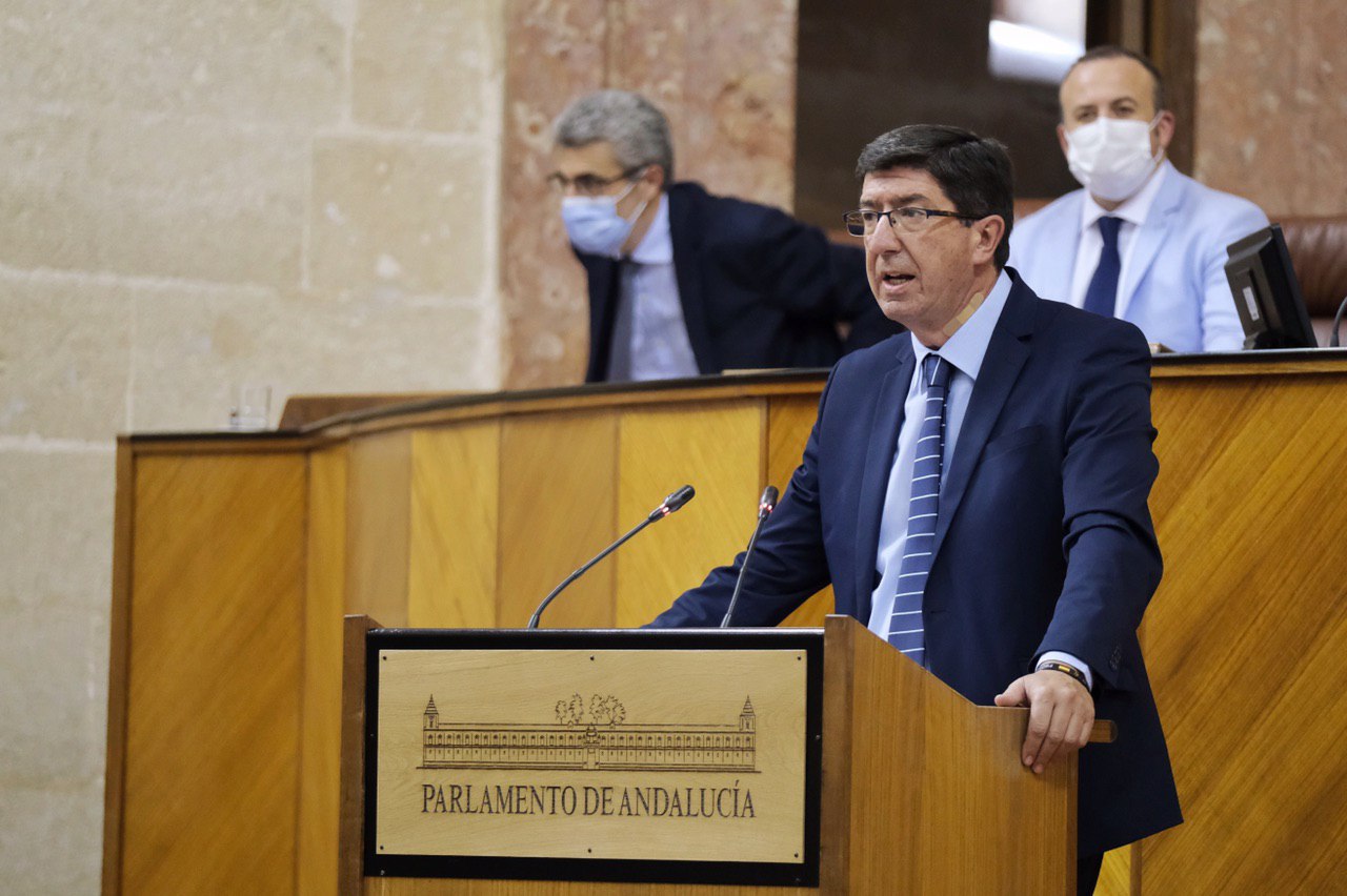 El vicepresidente de la Junta de Andalucía y consejero de Turismo, Regeneración, Justicia y Administración Local, Juan Marín, ha informado hoy en el Parlamento de las medidas puestas en marcha por el Gobierno andaluz ante la reactivación del turismo tras el cese del estado de alarma y las restricciones a la movilidad. “Estamos poniendo las herramientas necesarias para adaptar al sector a un nuevo escenario, que exige cambios para su reactivación”.