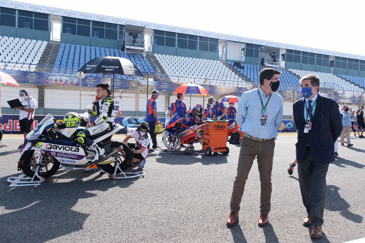 Asimismo, ha señalado que Andalucía ha demostrado su apuesta por el Gran Premio en las difíciles circunstancias actuales “y eso Dorna y su consejero delegado, Carmelo Ezpeleta, lo han reconocido y lo agradecerán seguro en el futuro, manteniendo esta prueba como una de las más importantes del calendario mundial”.