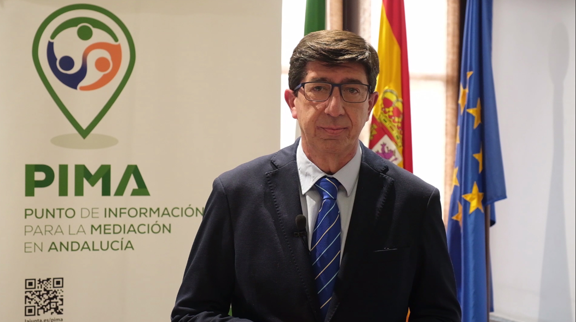 El vicepresidente y consejero de Turismo, Regeneración, Justicia y Administración Local, Juan Marín, ha destacado hoy las ventajas y los beneficios que la mediación tiene tanto para los ciudadanos como para la propia Administración de Justicia, coincidiendo hoy con la conmemoración del Día Europeo de la Mediación. Marín ha puesto en valor la labor que se realiza desde los nuevos Puntos de Información para la Promoción de la Mediación (PIMA), puestos en marcha por su departamento.
