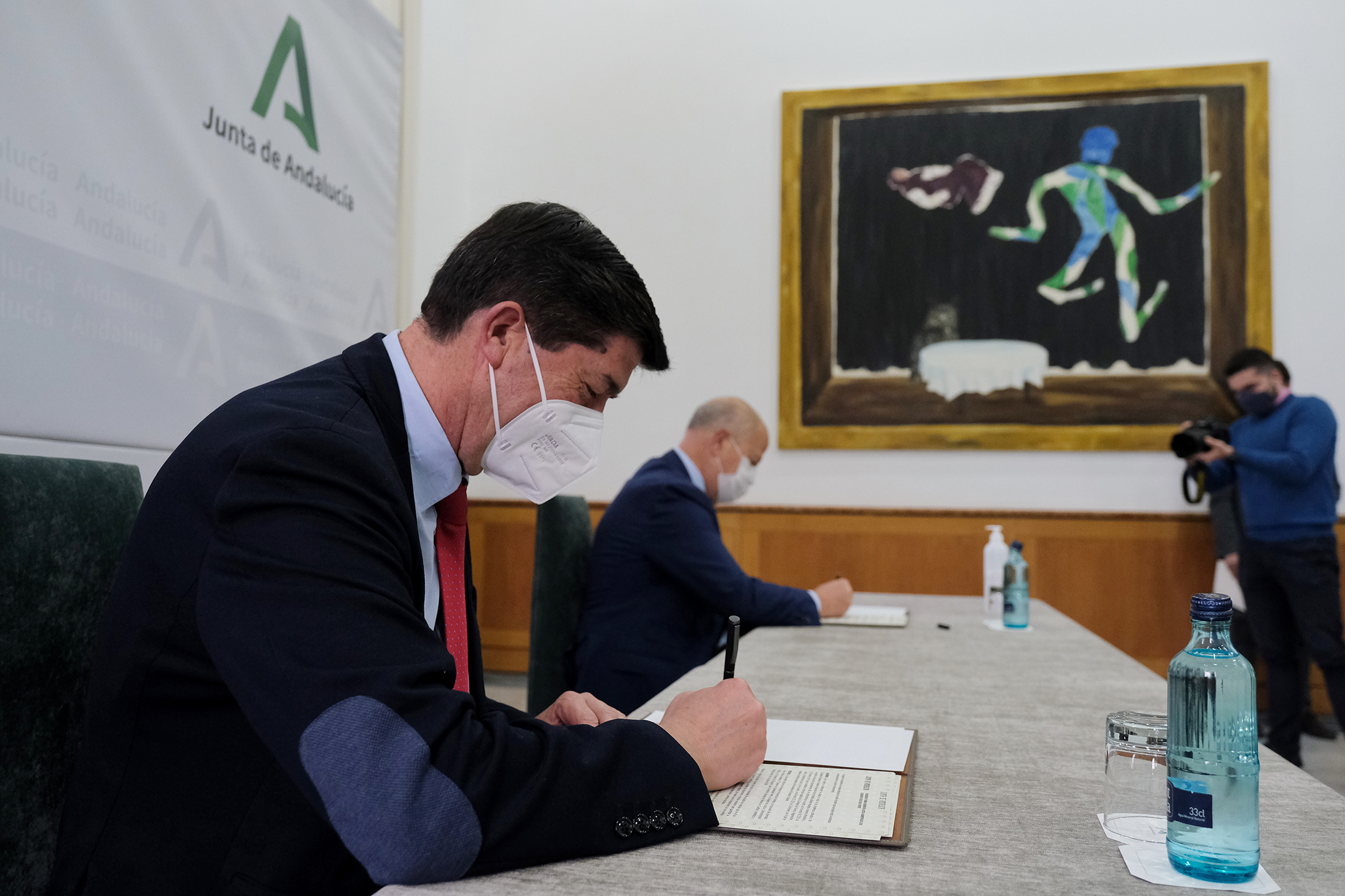 Juan Marín y el consejero de Educación, Javier Imbroda, firman el convenio en el Palacio de San Telmo