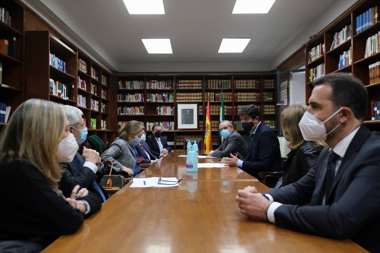 Así lo ha trasladado Marín en una reunión mantenida con la representante del Poder Judicial en Andalucía, Begoña Rodríguez; el presidente de la Audiencia de Sevilla, Damián Álvarez; el juez decano, Francisco Guerrero; el fiscal jefe, Luis Fernández Arévalo; y la secretaria provincial coordinadora, Felisa Panadero. Un encuentro en el que además han abordado la situación actual en la que se encuentra el proyecto de Ciudad de la Justicia en Palmas Altas después de que el Consejo de Gobierno diera la semana pasada luz verde a la adquisición de los edificios del Campus Abengoa y de dos solares más.