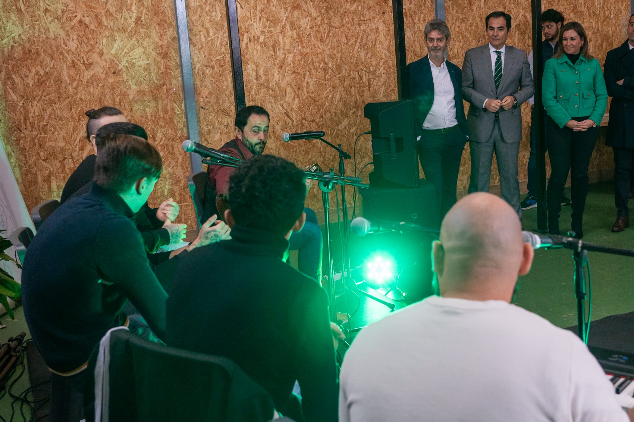 Los integrantes del conjunto “Los apañaos” no solo han puesto música a la lectura dramatizada del relato histórico de la movilización del 4 de diciembre de 1977, sino que han versionado temas de Dorantes o Raimundo Amador e incluso han interpretado letras propias en las que hablan de ellos mismos a ritmo de rap y flamenco fusión, tocando el piano y la percusión, junto a su educador a la guitarra.