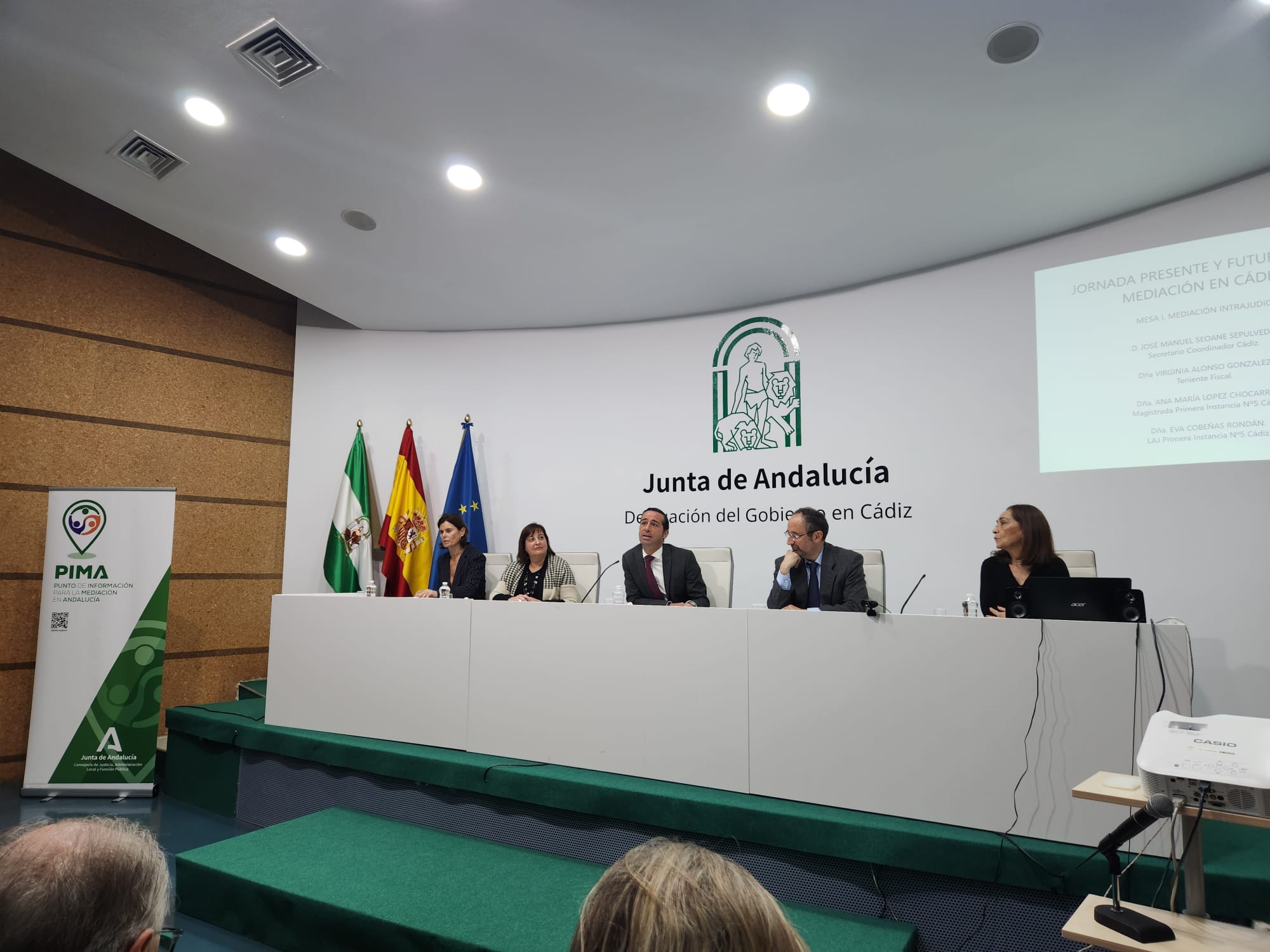 Rondón ha recordado que desde 2021 existen en las principales sedes judiciales Puntos de Información a la Mediación en Andalucía (PIMA) que, en el caso de Cádiz se encuentran tanto en los juzgados de la capital como en los de Algeciras. Cualquier persona interesada en la mediación puede acudir para informarse de cómo iniciar un proceso y recibir orientación, al tiempo que los juzgados pueden derivar asuntos. El objetivo es que sean “el enlace enlace entre los juzgados y los servicio mediación, todo va a pasar por ellos pero con agilidad porque se trata de que a los magistrados le demos facilidades para derivar asuntos y que la Administración de Justicia se focalice en aquellos relevantes y de especial complejidad”.