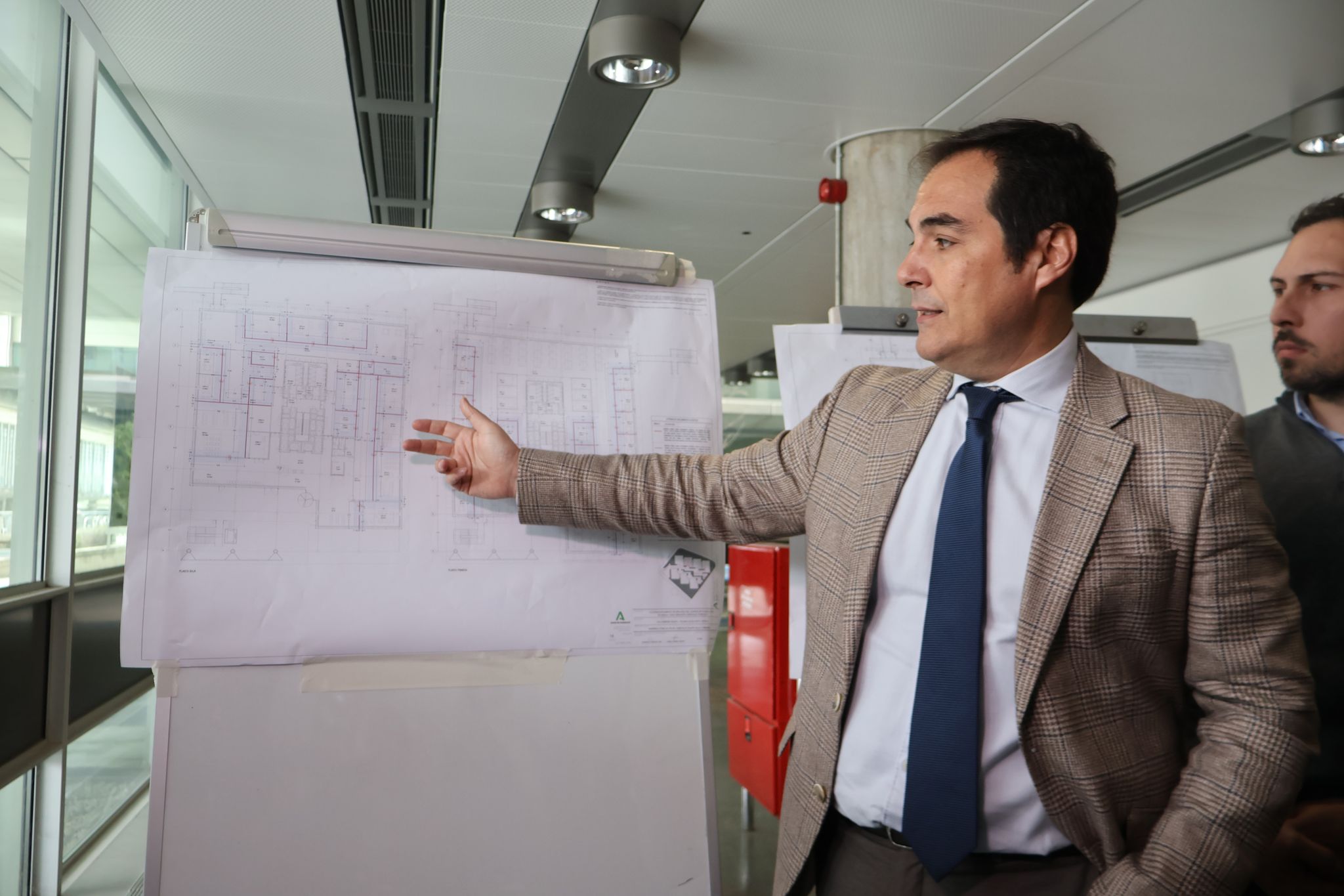 El consejero visita las obras del bloque B, al que se trasladarán 380 profesionales, lo equivalente al partido judicial de Jerez o Marbella