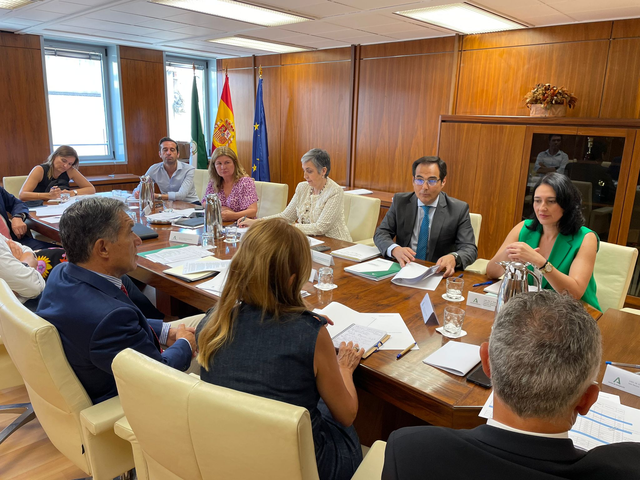 Durante la reunión, el consejero ha abordado con el presidente del TSJA y los jueces decanos las principales necesidades al respecto en los tres partidos judiciales que deben estar adaptados el 1 de octubre, donde trabajan 250 funcionarios, y los otros 12 que se adecuarán el 31 de diciembre, con más de 5.000 trabajadores.