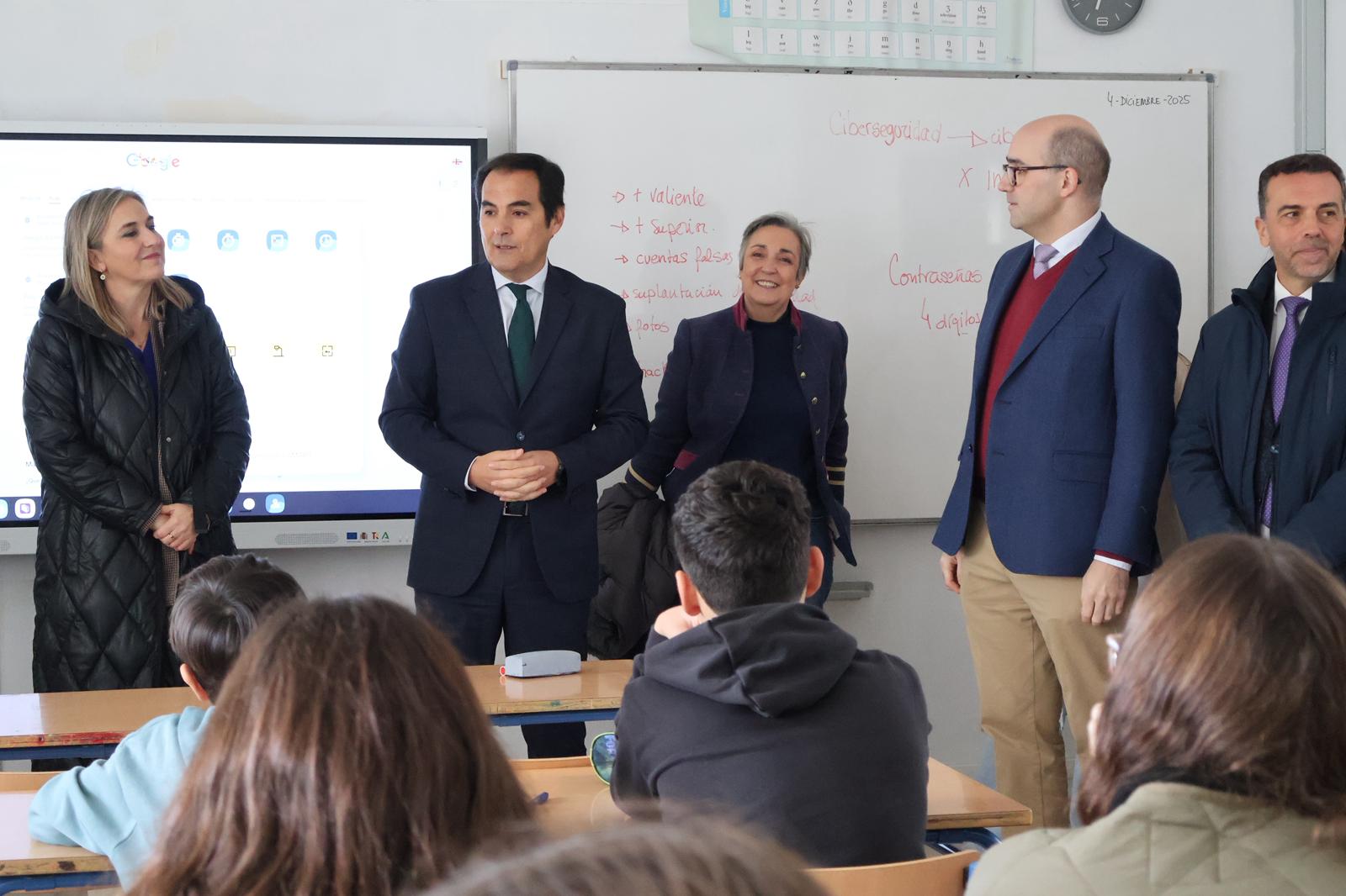 Configurar la privacidad de sus perfiles en redes sociales, identificar enlaces sospechosos, comprender los riesgos de compartir datos sensibles o fotos que comprometan su privacidad, mantener distancia y criterio frente a contactos desconocidos o reconocer situaciones de ciberacoso y cómo actuar para denunciarlo son algunos de los contenidos de los talleres impartidos a 245 alumnos del IES Ostippo de Estepa, que esta semana ha visitado el consejero de Justicia, Administración Local y Función Pública, José Antonio Nieto. Una formación en ciberseguridad que forma parte del programa de capacitación digital que desarrolla la Consejería con las Diputaciones en municipios de menos de 20.000 habitantes para reducir la brecha digital del medio rural.