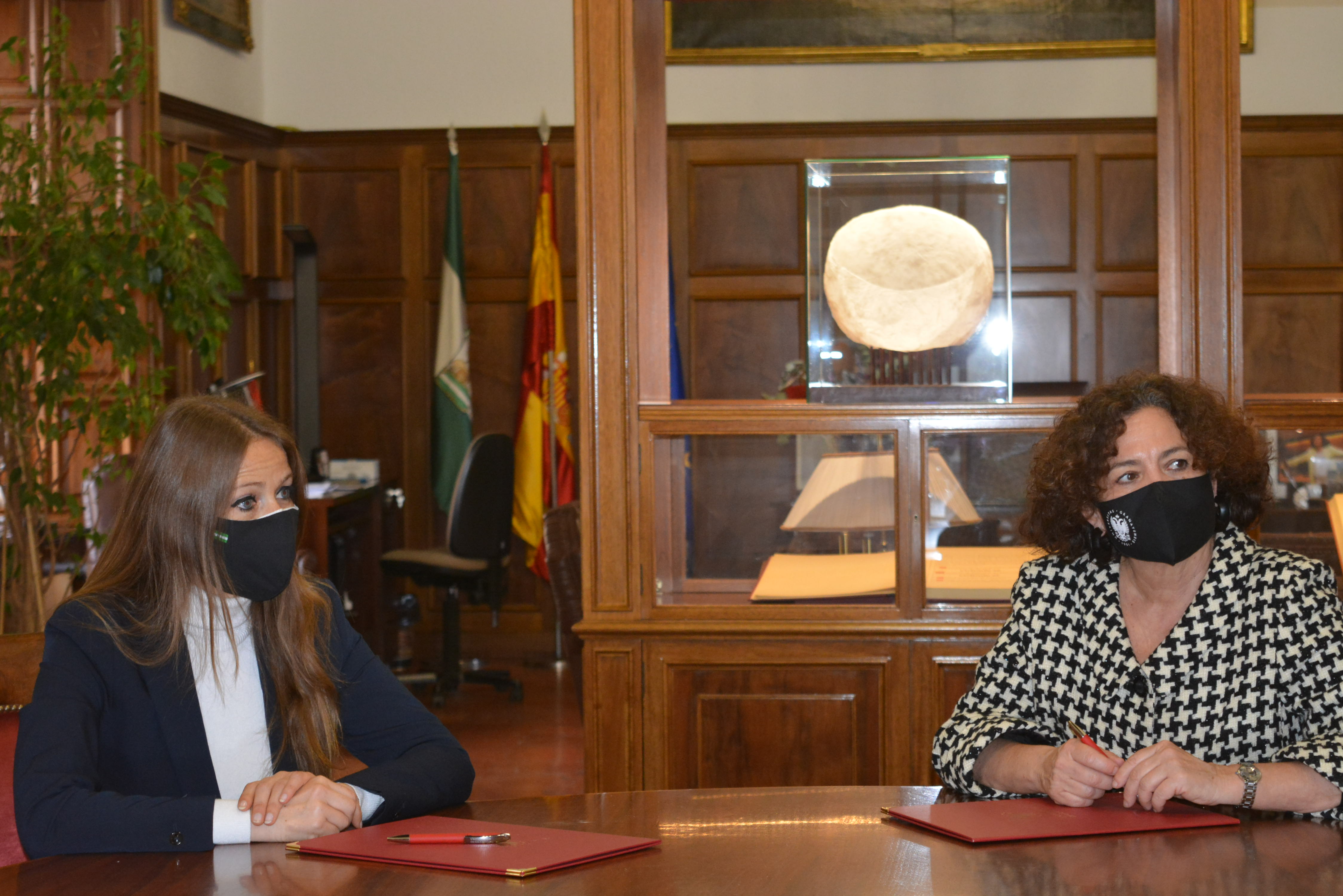 El Servicio Andaluz de Empleo y la Universidad de Granada han suscrito un convenio de colaboración para la creación de la “Cátedra de Innovación en Artesanía, Diseño y Arte Contemporáneo”. La finalidad es abrir nuevas vías de desarrollo y emprendimiento para los jóvenes artesanos, diseñadores y artistas. La firma ha sido suscrita hoy por la rectora de la UGR, Pilar Aranda Ramírez, y Virginia Fernández Pérez, delegada territorial de Empleo, Formación y Trabajo Autónomo de la Junta de Andalucía y directora provincial del SAE en Granada. La cita contó con la presencia de Ana García López, directora de la Cátedra, y Antonio Suárez, director del Centro de Referencia Nacional Albayzín.