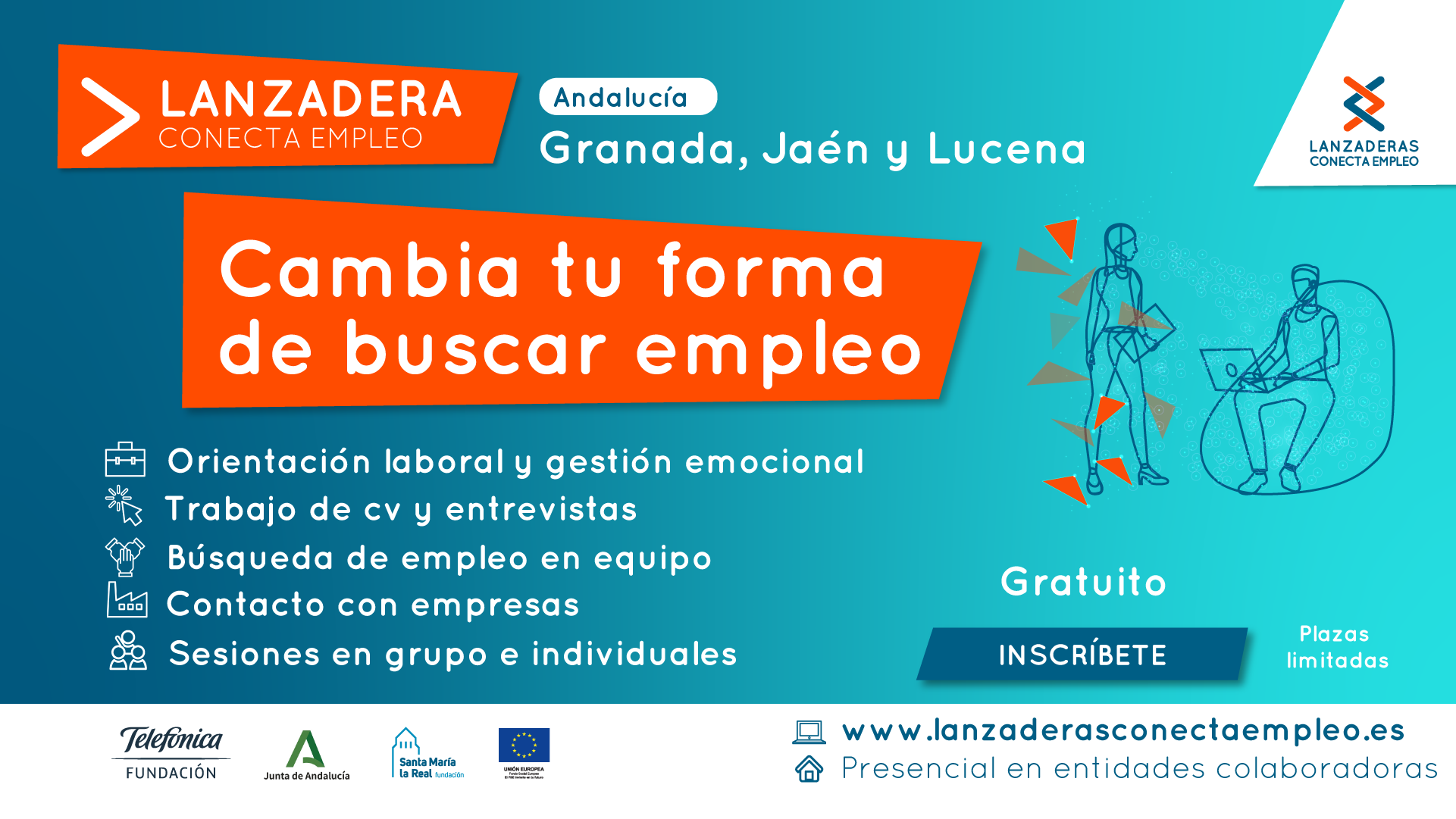 La iniciativa está impulsada por Fundación Santa María la Real y Fundación Telefónica, con la cofinanciación del Fondo Social Europeo, a través del programa operativo POISES, y la colaboración de la Consejería de Empleo, Formación y Trabajo Autónomo de la Junta de Andalucía y los Ayuntamientos de Granada, Jaén y Lucena.