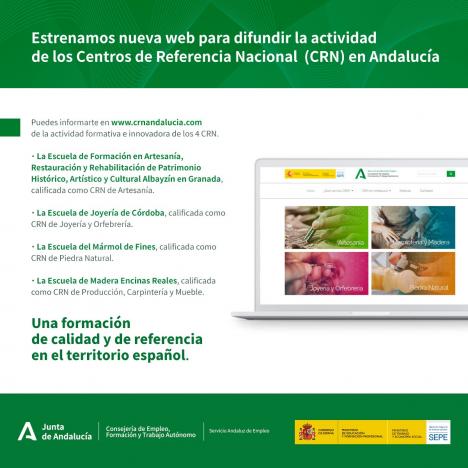 La web, que puede consultarse en el enlace www.crnandalucia.com es un espacio dedicado a cada CRN: Piedra Natural, Artesanía, Producción, Carpintería y Mueble y Joyería y Orfebrería.