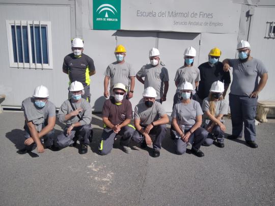La Escuela del Mármol de Fines, centro formativo adscrito al Servicio Andaluz de Empleo y Centro de Referencia Nacional de Formación Profesional en la familia de Industrias Extractivas, ha iniciado esta semana un nuevo itinerario formativo en el cual doce personas en situación de desempleo van a poder adquirir una completa preparación en la especialidad de manejo y mantenimiento de pala cargadora, excavadora hidráulica y dúmper en explotaciones a cielo abierto.