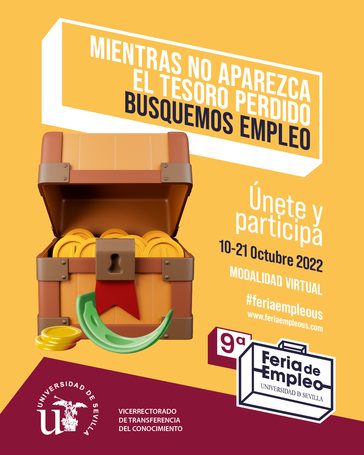 El Servicio Andaluz de Empleo (SAE) participará del 10 al 21 de octubre en la IX Feria Virtual de Empleo y Emprendimiento de la Universidad de Sevilla, un encuentro que en esta edición se desarrolla en formato exclusivamente virtual. EL SAE estará presente a través de un expositor al que llevará la cartera de servicios que ofrece a las personas desempleadas y la programación de dos chats, uno en materia de orientación y otro sobre la Red Eures y la movilidad laboral en Europa, durante los días de apertura de chats, el 19 y 20 de octubre.