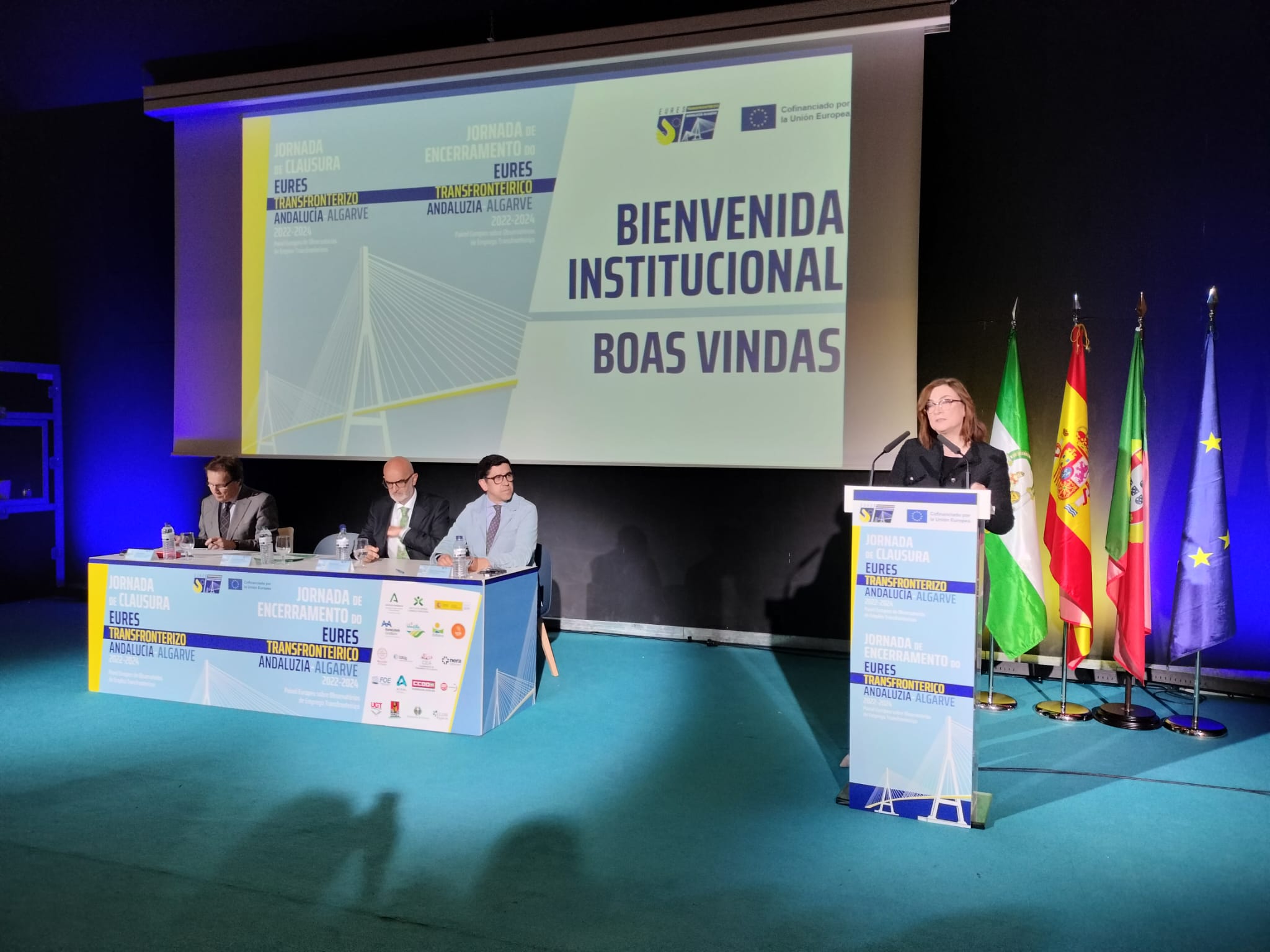 La viceconsejera de Empleo, Empresa y Trabajo Autónomo, Beatriz Barranco, junto a la directora gerente del Servicio Andaluz de Empleo (SAE) Victoria Martín-Lomeña han participado este miércoles en Ayamonte en las jornadas de clausura de la cuarta edición del proyecto Eures Transfronterizo Andalucía-Algarve 2022-24 (Eures-T) para la promoción de la movilidad laboral, puesto en marcha en 2022. El objetivo del proyecto es afrontar los retos de los mercados de trabajo de ambas regiones ante el escenario de debilidad, fundamentalmente debido a la crisis sanitaria y sus consecuencias a las que se han sumado la crisis energética y el encarecimiento de las materias primas, los procesos de producción y de comercialización.