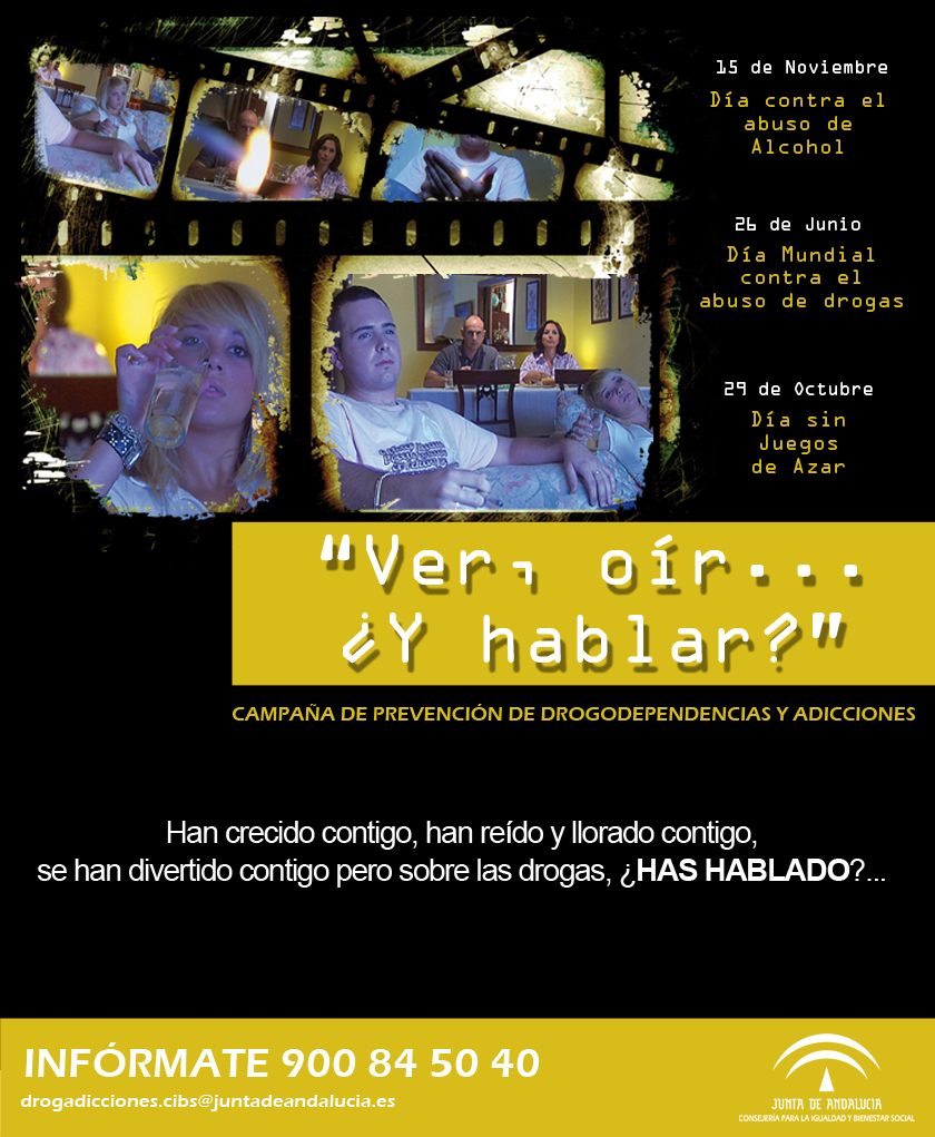La Campaña de Prevención de Drogodependencias y Adicciones de 2008, con una duración de doce meses, engloba dos estrategias de comunicación bien diferenciadas: "TE INVITAMOS A DECIR NO", realizada en verano para el público juvenil de edades comprendidas entre 16 a 30 años, y "VER, OIR Y ¿HABLAR? ", en los meses de octubre a diciembre para las familias, entendiendo por ésta a los agentes responsables de la salud y educación de las hijas e hijos.