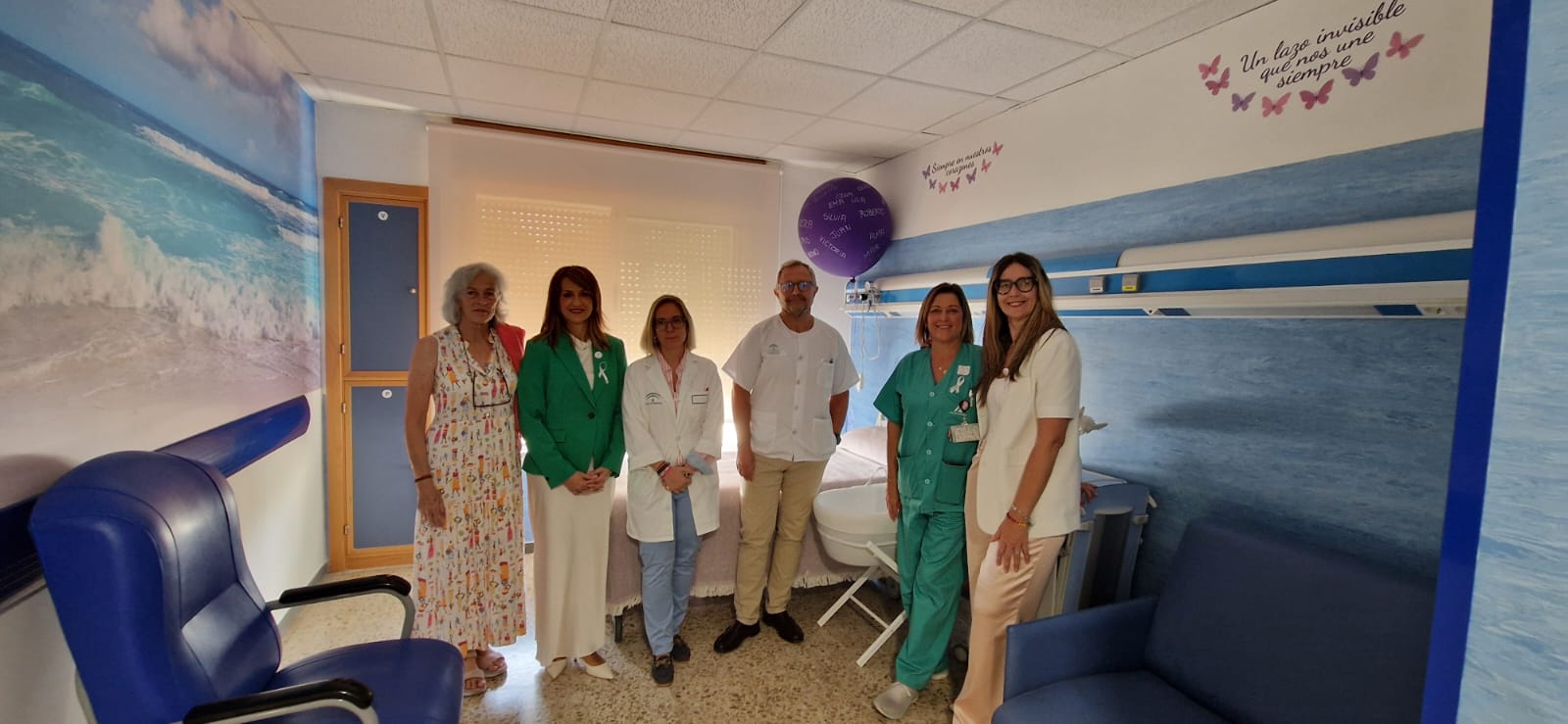La gerente del Área de Gestión Sanitaria Campo de Gibraltar Oeste, Fátima González, junto al subdirector de Enfermería del Área, Juan Antonio Sánchez, y profesionales del Servicio de Maternidad han presentado la habitación a representantes del Colegio de Enfermería (la vicepresidenta Aroa Vaello y la vocal Rosa Girón), y de la Asociación de Apoyo al Duelo Gestacional, Perinatal y Neonatal ‘Matrioskas’ (la vicepresidenta Maribel Rivera). Posteriormente, se ha recordado a los bebés fallecidos durante la gestación, el parto o al poco de nacer, leyendo sus nombres junto a la puerta de entrada principal del Hospital, acto en el que ha participado una familia.