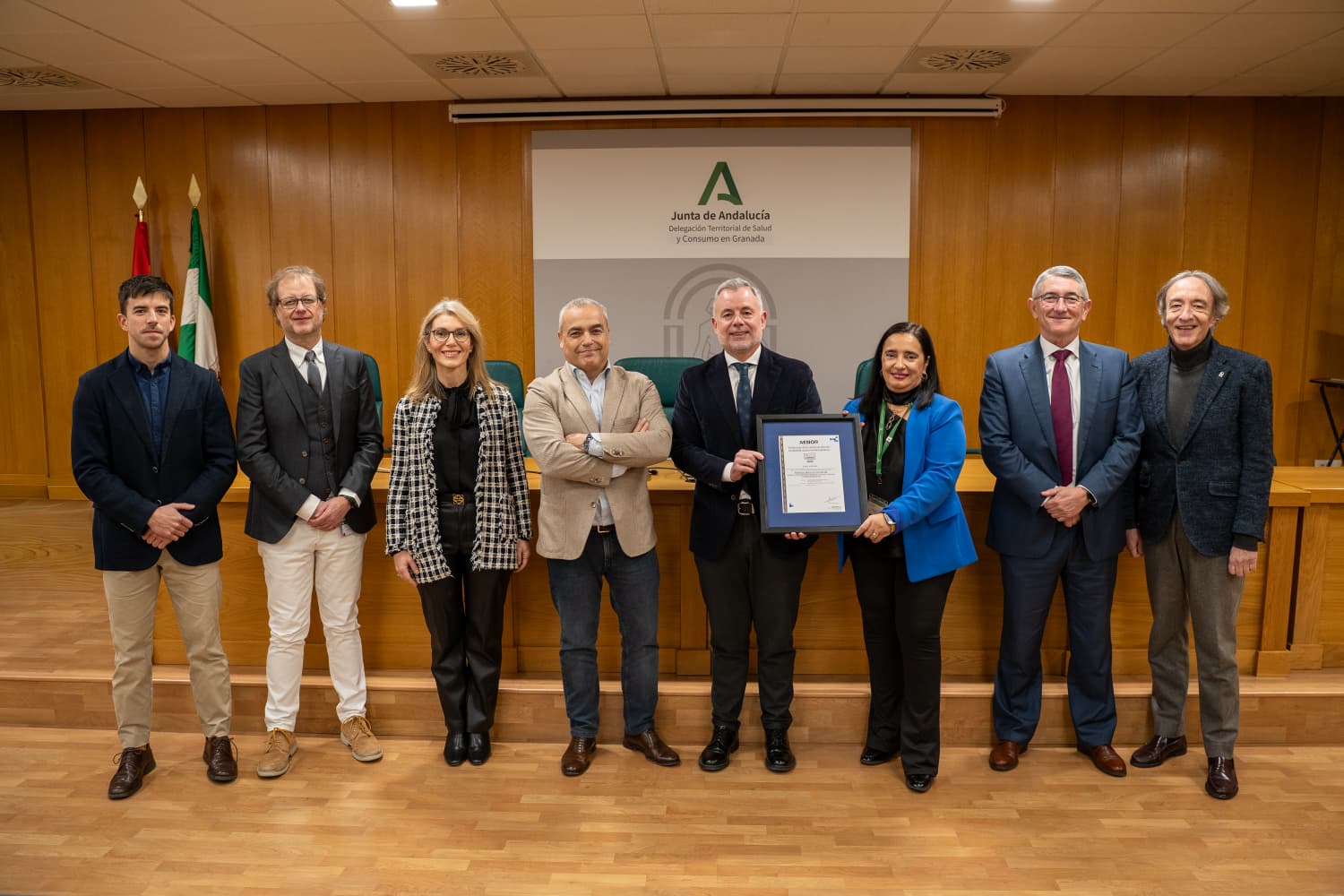 El acto de entrega de este sello ha tenido lugar en la delegación de Sanidad, y, junto al delegado territorial, Indalecio Sánchez-Montesinos, han asistido la directora gerente del hospital granadino, María Ángeles García Rescalvo; el director territorial de sanidad de AENOR para Andalucía, Antonio Pérez Carreño; y el jefe servicio de Medicina Intensiva y presiente de la Sociedad Andaluza de Medicina Intensiva y Unidades Coronarias, José Miguel Pérez Villares, con representantes de su equipo implicados en el proceso de acreditación.
