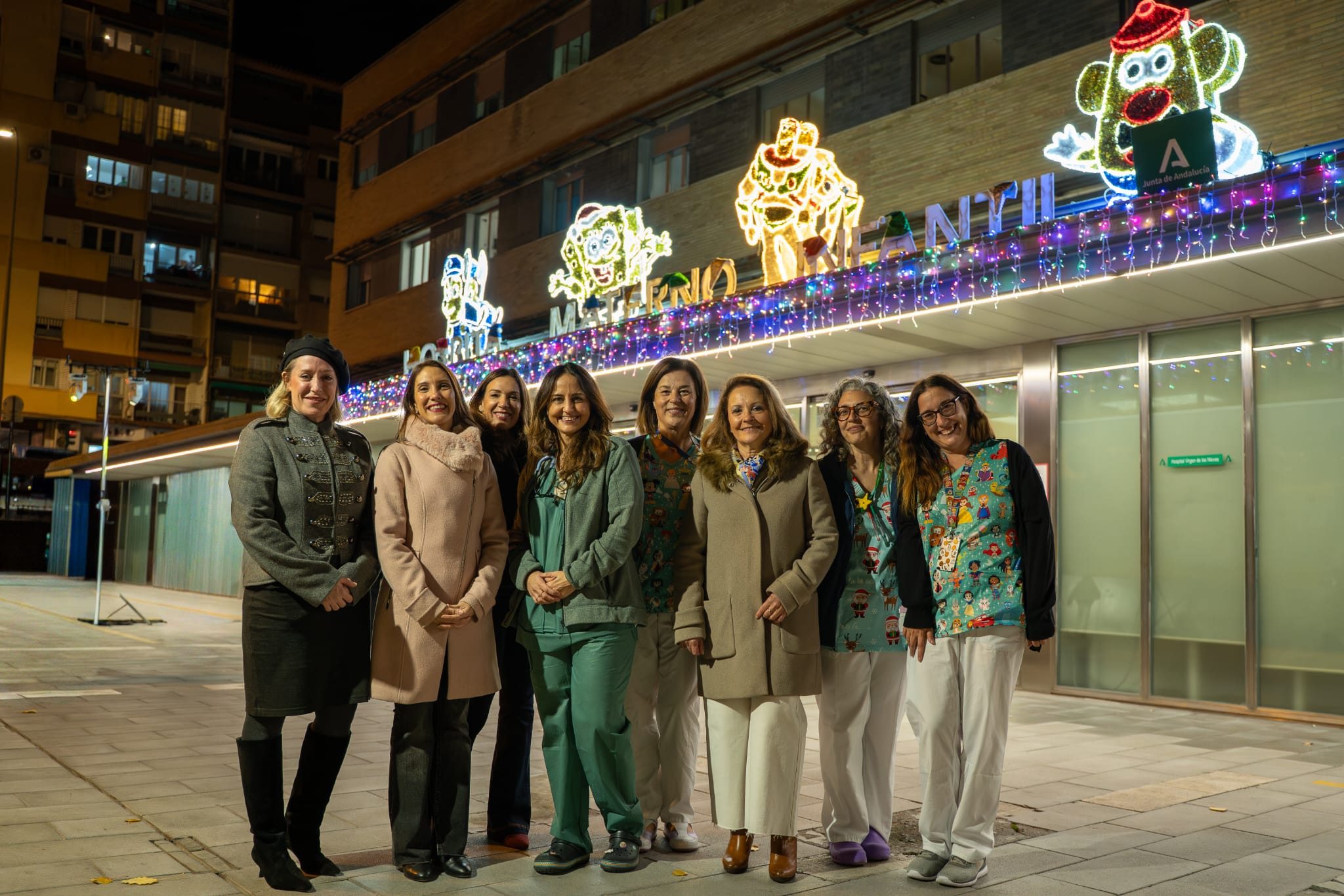 El Hospital Universitario Virgen de las Nieves, perteneciente al Servicio Andaluz de Salud de la Junta de Andalucía, ha inaugurado la iluminación navideña de la fachada del Hospital Materno Infantil con motivos infantiles para humanizar la asistencia sanitaria en estas fechas señaladas.