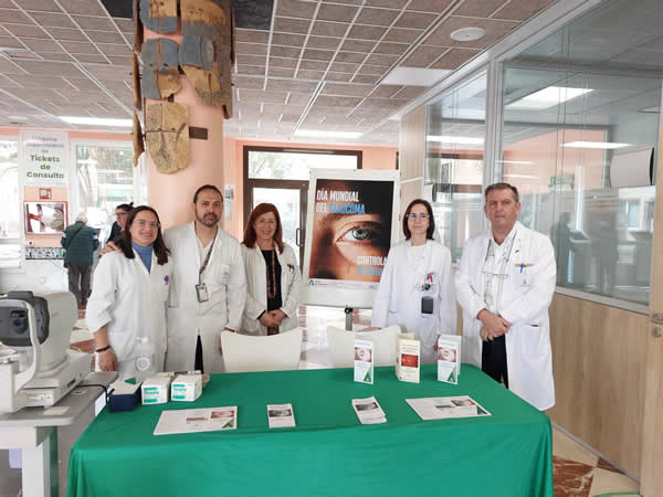El Hospital Universitario Poniente, perteneciente al Servicio Andaluz de Salud (SAS) de la Consejería de Sanidad, Presidencia y Emergencias, se ha sumado a la celebración de la Semana del Glaucoma, recordando a pacientes y acompañantes la importancia del diagnóstico precoz de esta patología. Se trata de una de las principales causas de ceguera en todo el mundo y afecta a un 3% de la población. Profesionales de la Unidad de Oftalmología y del área de Consultas Externas han realizado mediciones de la tensión ocular y han ofrecido información sobre esta patología.