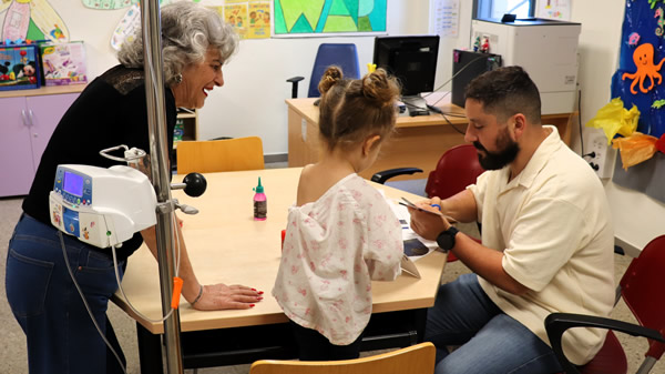 Este año, los menores han recibido el recortable del paso de palio de Nuestra Señora de los Ángeles, titular de la Ilustre Hermandad de la Borriquita, la cofradía por excelencia de los niños en Huelva. Esta manualidad les va a servir de entretenimiento y de conexión con las tradiciones culturales de estos días, haciéndoles pasar las tardes más entretenidas en la ludoteca del centro junto al voluntariado de Cruz Roja Juventud y del Patio del Amor, que colaboran siempre con los más pequeños del hospital.