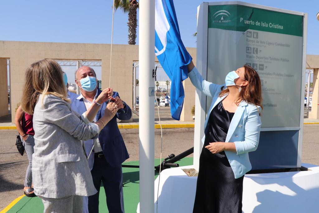 Izado de la bandera azul en el puerto deportivo de Isla Cristina.