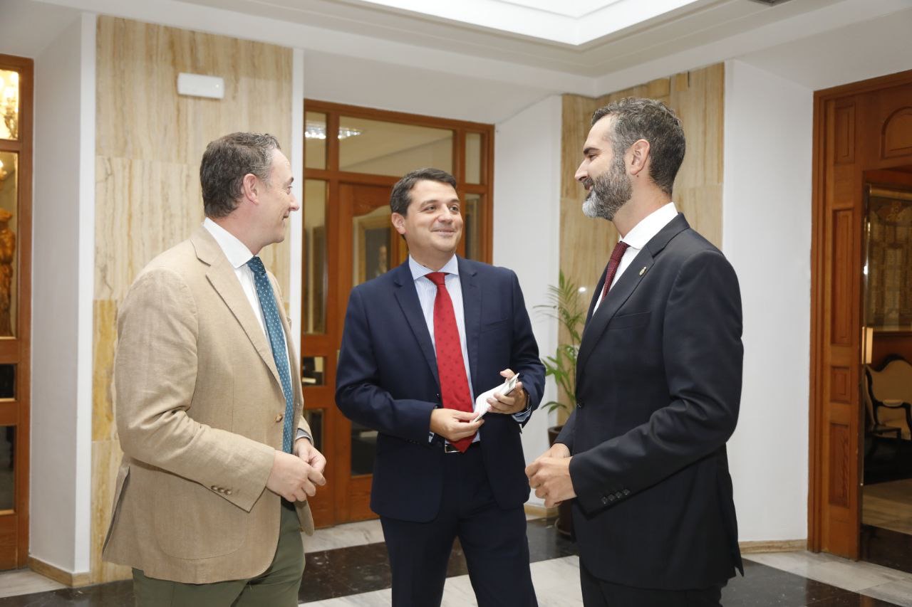 Acompañado por el viceconsejero, Sergio Arjona, la secretaria general de la Consejería, María del Mar Plaza, y por el director general de Política Forestal y Biodiversidad, Giuseppe Aloisio, además de por el delegado del Gobierno de la Junta en Córdoba, Adolfo Molina, y el delegado territorial en funciones, Juan Ramón Pérez, el consejero Fernández-Pacheco ha saludado en el consistorio cordobés a los portavoces de los grupos con representación municipal, ha firmado en el libro de honor y ha mantenido una reunión con el regidor en la que ha dejado manifiesto el interés de la Consejería por favorecer acciones conjuntas con las administraciones locales en la lucha contra el cambio climático, además de en el desarrollo de propuestas enmarcadas en la ‘Revolución verde’ o la prevención de incendios forestales, por ejemplo.