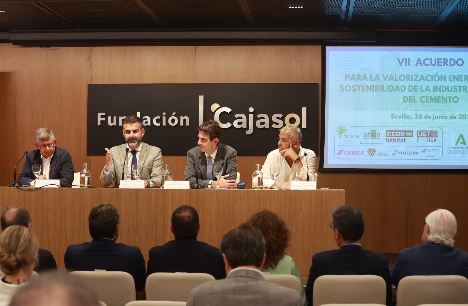 Así lo ha apuntado Fernández-Pacheco, que ha asistido al acto de firma del séptimo acuerdo para la valorización energética y la sostenibilidad de la industria andaluza del cemento celebrado este lunes en la sede de la Fundación Cajasol y suscrito entre el presidente de la Agrupación de Fabricantes de Cemento de Andalucía (AFCA), Alan Svaiter, el secretario general de FICA-UGT Andalucía, José Manuel Rodríguez Saucedo, y por el secretario general de CC OO Hábitat de Andalucía, José Miguel Sánchez Cano. Un acuerdo que busca “mantener el desarrollo económico del sector a la par que favorecer la protección al medio ambiente, fomentar el uso responsable de recursos naturales y garantizar la salud de las personas”.