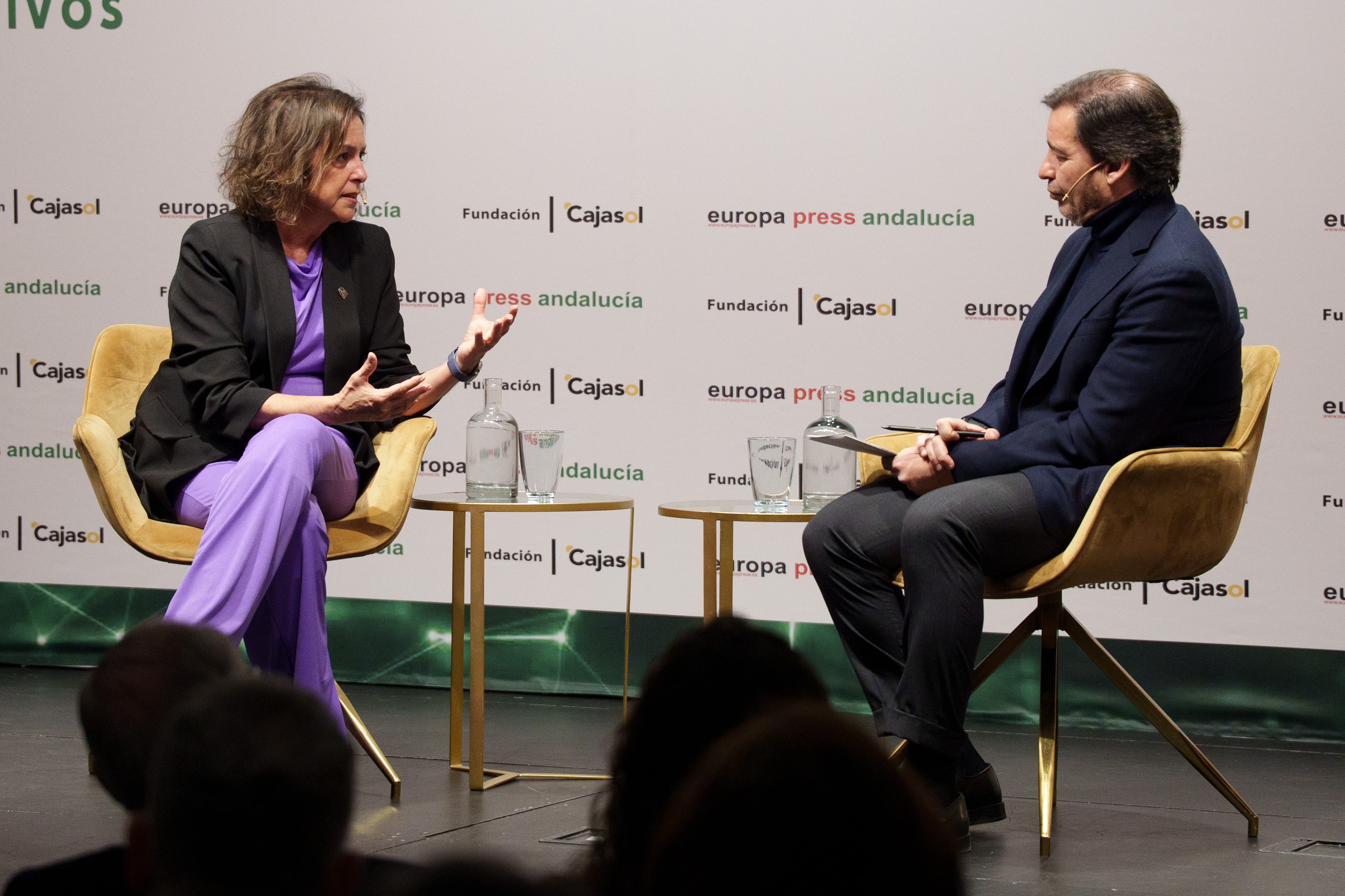 La consejera de Sostenibilidad y Medio Ambiente de la Junta de Andalucía, Catalina García, ha protagonizado este martes una nueva edición del desayuno informativo de Europa Press, donde ha compartido escenario con el delegado de la agencia de noticias, Francisco Morón, en la sede de la Fundación Cajasol. Allí, la consejera ha disertado sobre las cuatro leyes impulsadas por su departamento y aprobadas en esta legislatura: la Ley de Economía Circular, la de Agentes Medioambientales, de Montes y la Ley para la Gestión Ambiental de Andalucía. “Estas nuevas normas van a mejorar la vida de los andaluces durante décadas. Vienen a desenmarañar y simplificar la gestión ambiental de Andalucía”, ha apuntado.