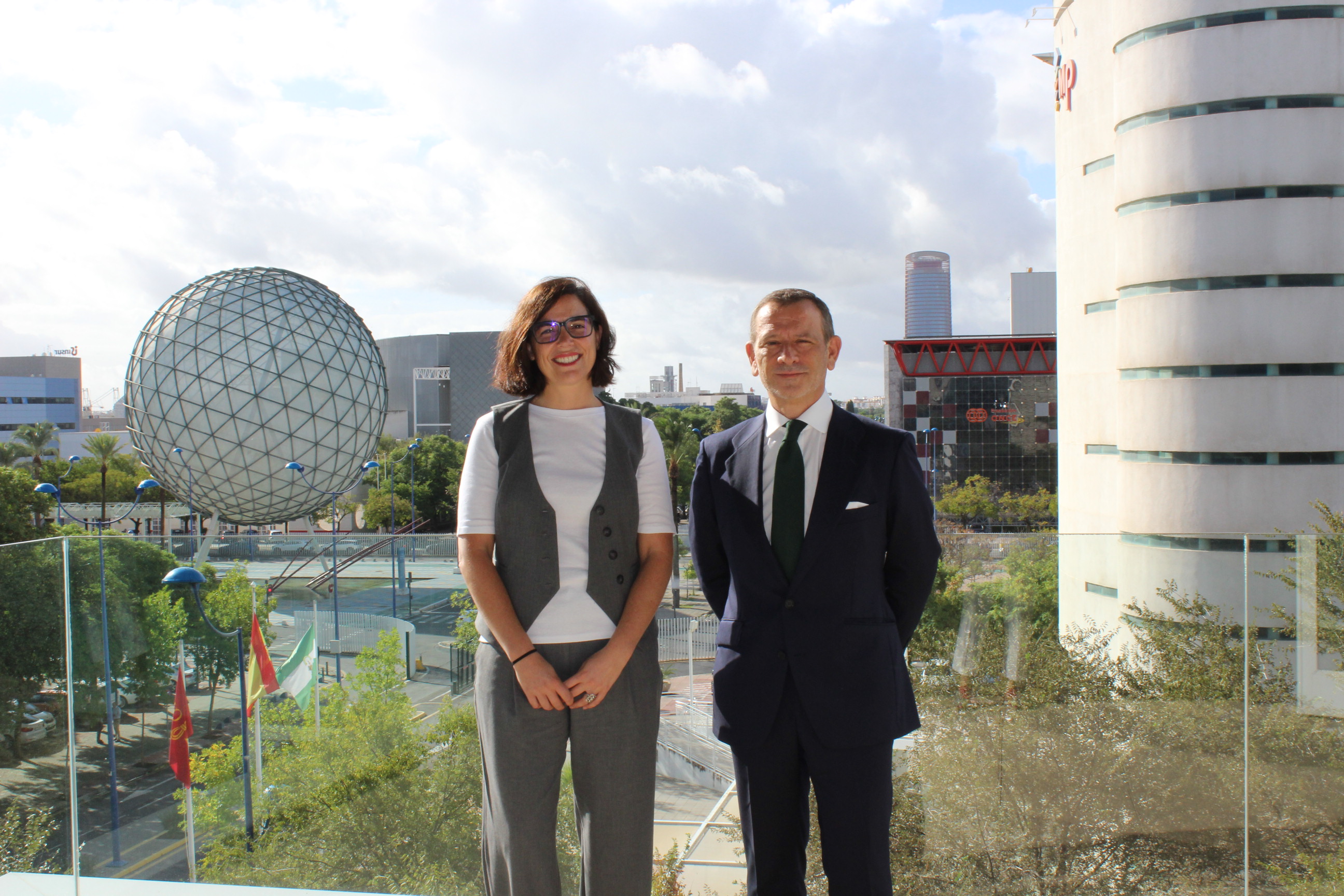 La directora de la Oficina Española de Patentes y Marcas, Aida Fernández, y el director general de Andalucía TRADE, Antonio Castro.