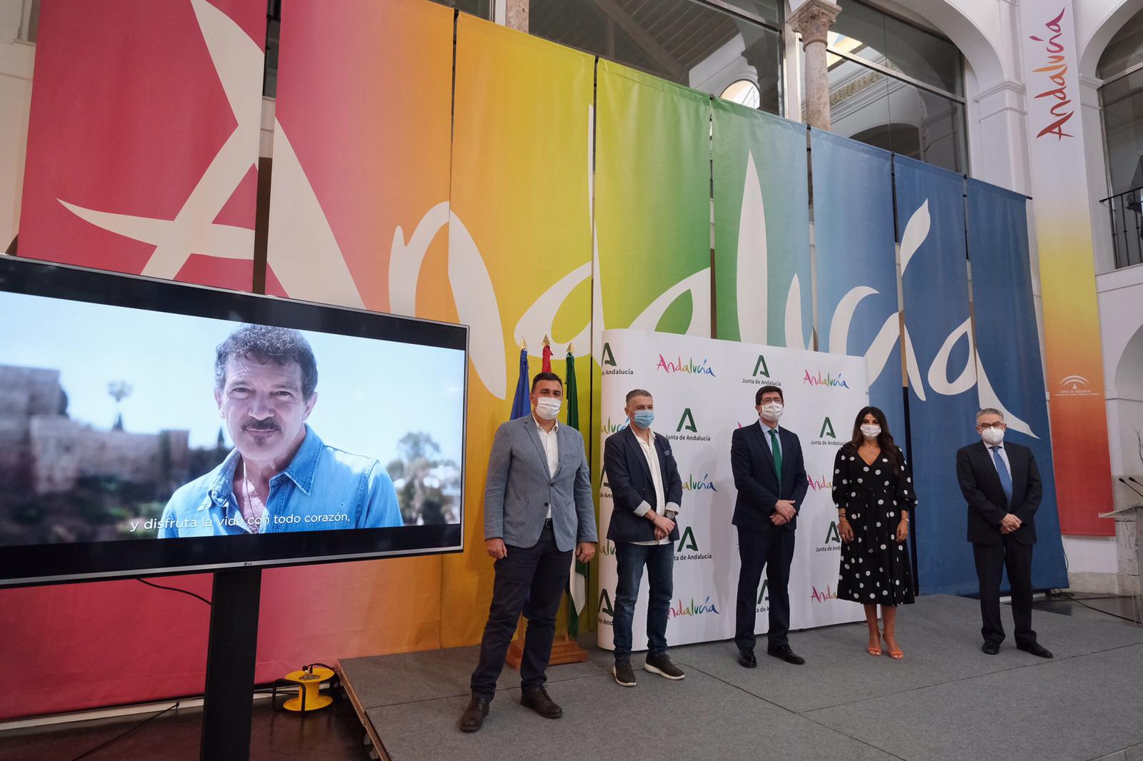 El vicepresidente de la Junta de Andalucía y consejero de Turismo, Regeneración, Justicia y Administración Local, Juan Marín, ha presentado hoy la campaña de promoción del destino turístico Andalucía que protagoniza el actor malagueño Antonio Banderas. “De su mano nuestra marca vuelve a coger la fuerza que siempre ha tenido. Es una campaña llena de sentimiento y esperanza después de haber pasado por estos meses de incertidumbre, pero de los que saldremos fortalecidos”.