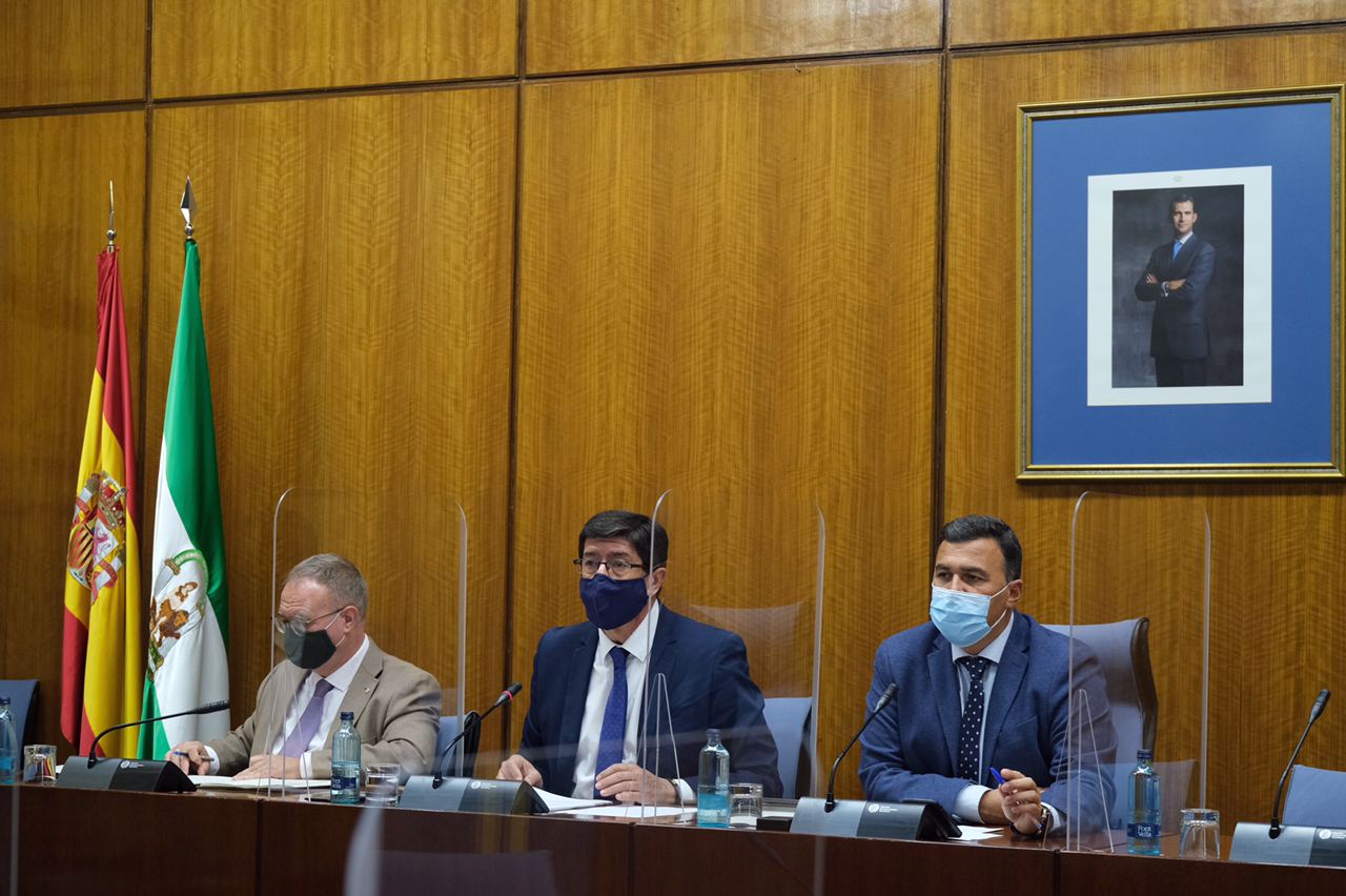 El vicepresidente de la Junta de Andalucía y consejero de Turismo, Regeneración, Justicia y Administración Local, Juan Marín, ha presentado hoy en comisión parlamentaria el proyecto de Ley de presupuestos 2021 de su consejería.