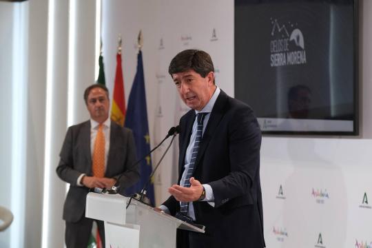 El vicepresidente de la Junta de Andalucía y consejero de Turismo, Regeneración, Justicia y Administración Local, Juan Marín, ha asistido hoy en Fitur a la presentación de Sierra Morena como uno de los más importantes destinos Starligth de Europa, y ha destacado el potencial de este segmento y la riqueza de los cielos andaluces para actividades relacionadas con el astroturismo.