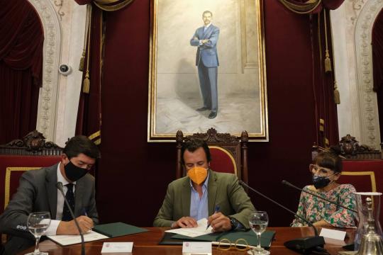 Juan Marín firma el convenio de colaboración en materia turísica con el Ayuntamiento de Cádiz.
