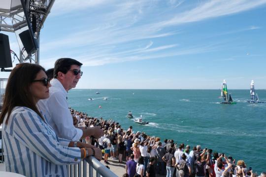 Ha afirmado que durante estas jornadas “Andalucía y Cádiz se han convertido en el centro neurálgico de la navegación”, al acoger en sus aguas esta competición de catamaranes, “unos auténticos bólidos que están haciendo de la Bahía el escenario de un espectáculo increíble”.