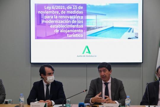 La ley desarrolla el Decreto-Ley 14/2021, de 6 de julio, y permite poner en marcha, desde ya, medidas de incentivo para la renovación y modernización de los establecimientos de alojamiento turístico y también de los palacios de congresos. Esta ley era necesaria porque facilitará a los hoteles su adaptación a una categoría superior, mejora los servicios complementarios para contribuir a reducir la estacionalidad e incentiva la inversión empresarial en un sector esencial para la economía andaluza, según ha explicado el viceconsejero de Fomento.