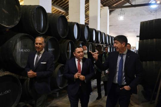 Marín ha visitado hoy las Bodegas Salado en Umbrete y García Palacios y Halcón en Lebrija, tres ejemplos del tejido productivo en torno al sector en la provincia, y ha abogado por la colaboración entre los ayuntamientos de la zona, los productores y bodegueros y la Junta de Andalucía para poner en marcha “en el corto plazo” una ruta enoturística como producto para atraer visitantes a la provincia que “conozcan sus caldos, sus municipios y otro tipo de visitas que terminan generando mucho empleo”.