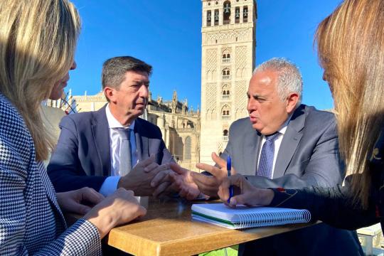 “Estamos definitivamente en el año de la recuperación turística, y este sector, que es estratégico para Andalucía, ahora está en una situación en la que todos tenemos grandes esperanzas”, ha añadido el vicepresidente tras el encuentro en el que ha estado acompañado por la viceconsejera de Turismo, Regeneración, Justicia y Administración Local, Ana García; la delegada territorial de Turismo en Sevilla, Rosa Hernández; y, entre otros empresarios, el director del Hotel Doña María, Manuel Domínguez.